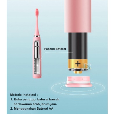 LNR ShopSikat Gigi Eletrik Dewasa dan Anak-Anak dengan 2pcs Kepala Sikat Lembut Mode Baterai Smart Ultra Sonic Waterproof IPX7 Nirkabel Bersih Perawatan Mulut Sikat Gigi Pemutih Kualitas