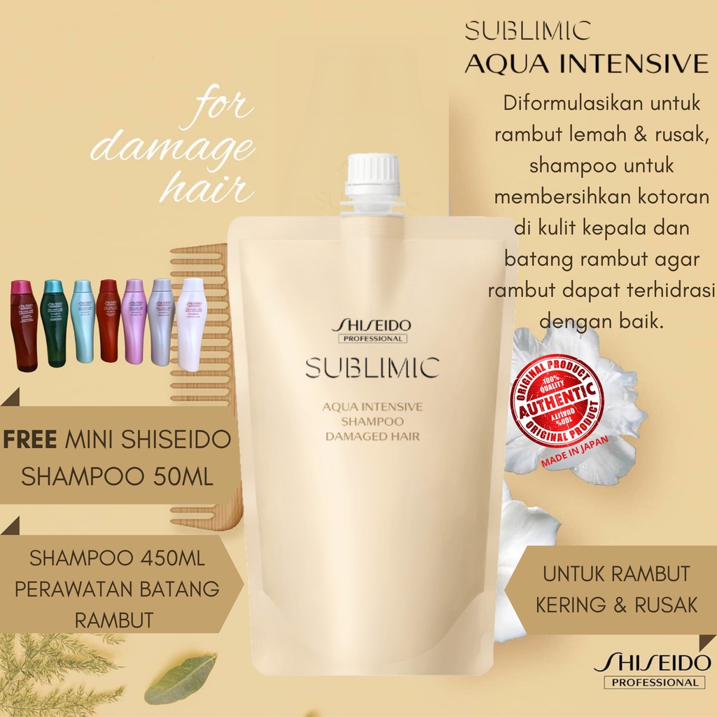 Shampoo Shiseido NEW Dry Damaged Hair SUBLIMIC AQUA INTENSIVE 450ml Refill Pouch - shampo perawatan rambut rusak dan kering