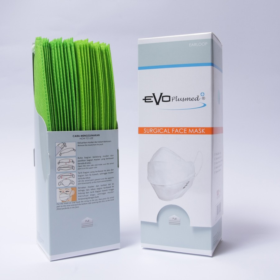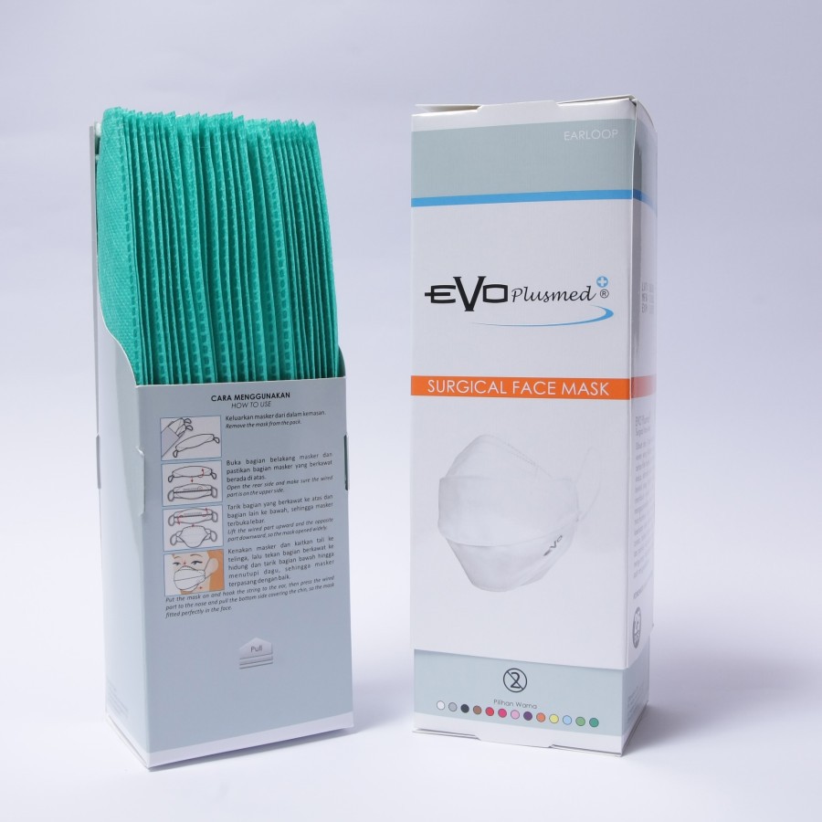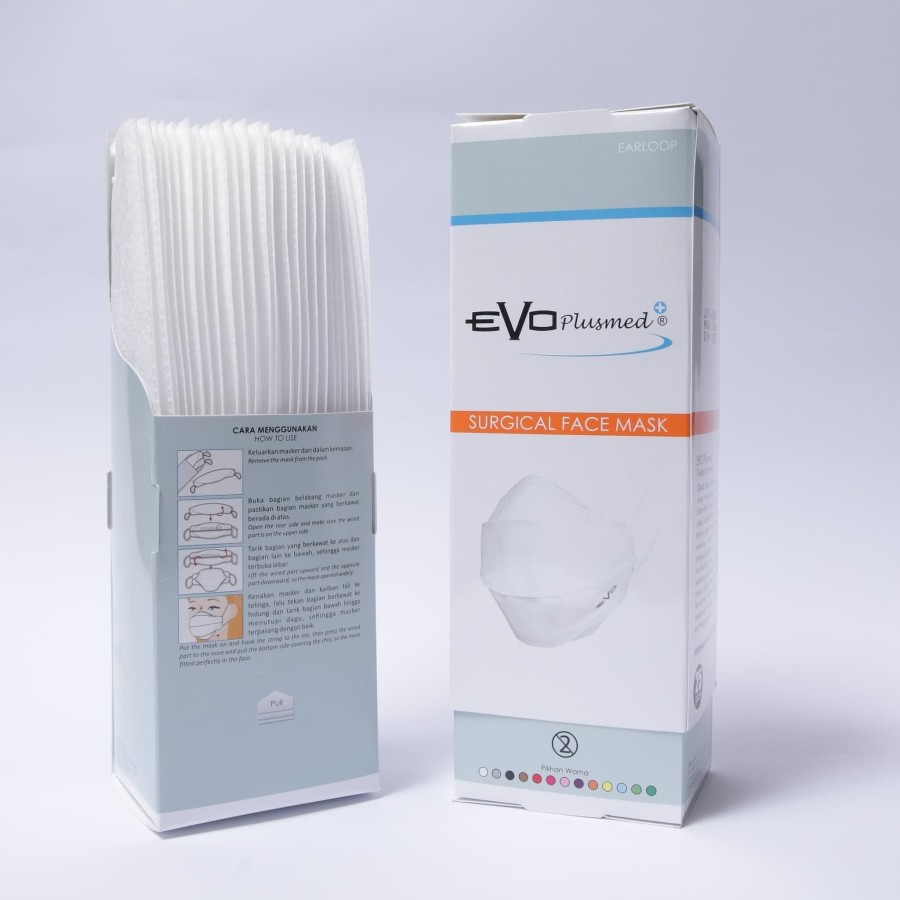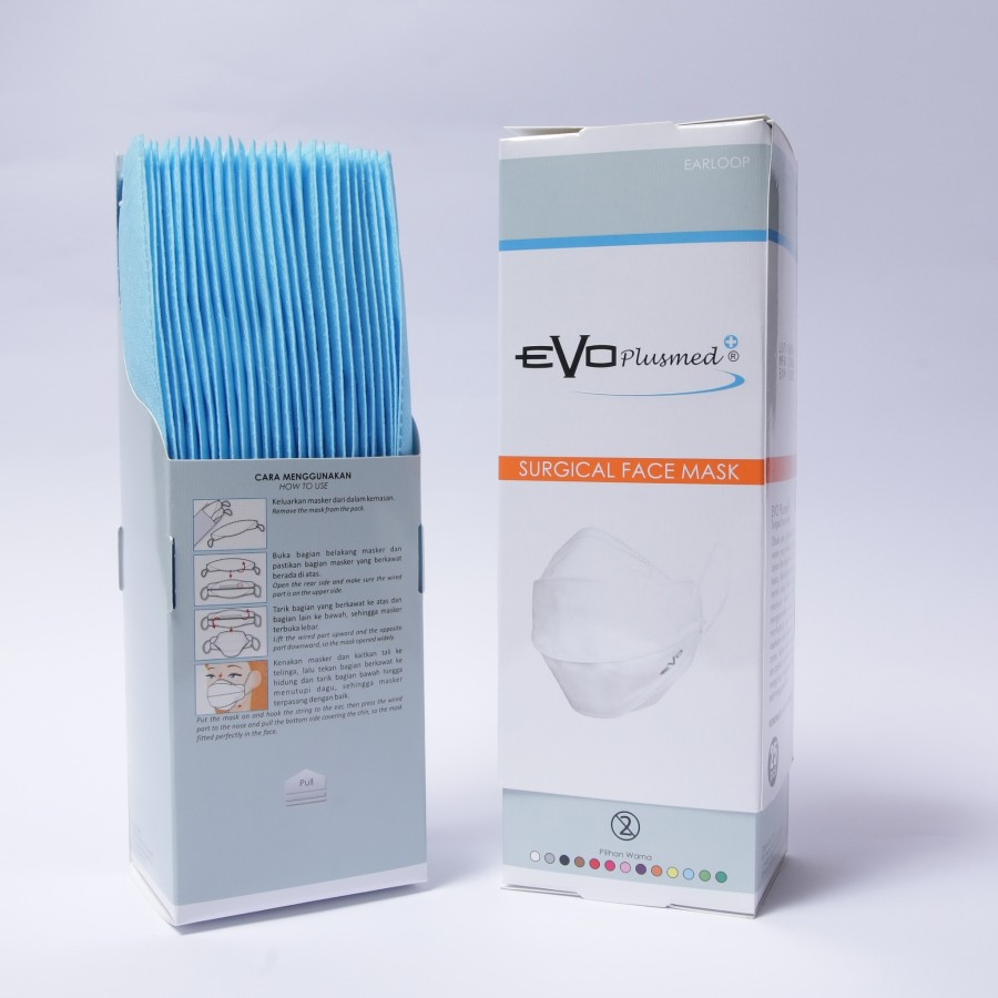 Masker Surgical Face Mask EVO PlusMed Box Isi 25 Pcs | Isi 20 Pcs Earloop 3 Ply 3Ply 5 Ply 5Ply ORIGINAL 100%