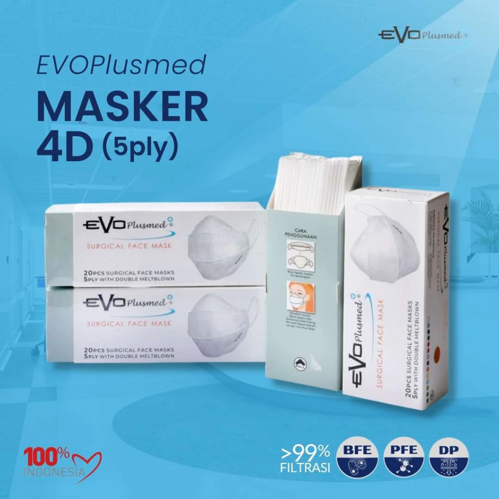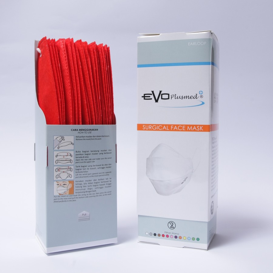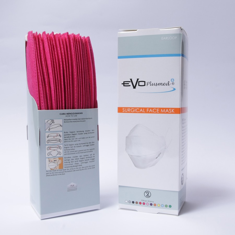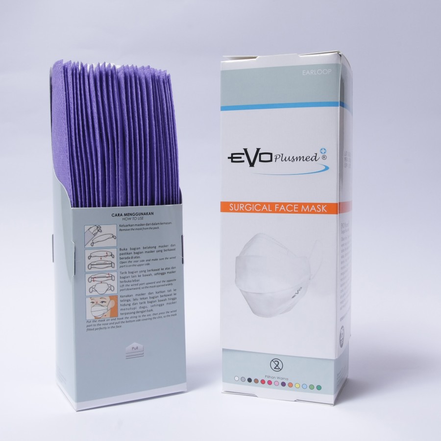 Masker Surgical Face Mask EVO PlusMed Box Isi 25 Pcs | Isi 20 Pcs Earloop 3 Ply 3Ply 5 Ply 5Ply ORIGINAL 100%