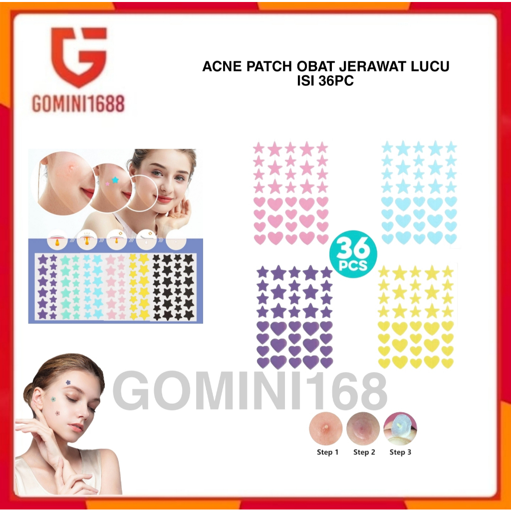Pimple Patch For Face Dengan Karkater Lucu Motif Bintang Hati Acne Patch Obat Jerawat Tanpa Dipencet Dan Berbekas 1 Lembar isi 36 Pcs Warna Warni