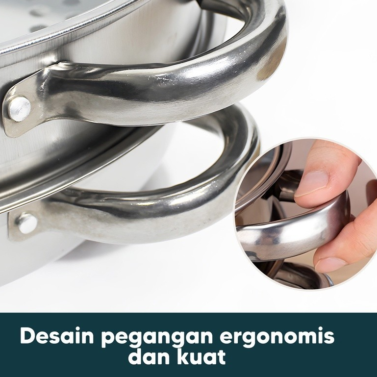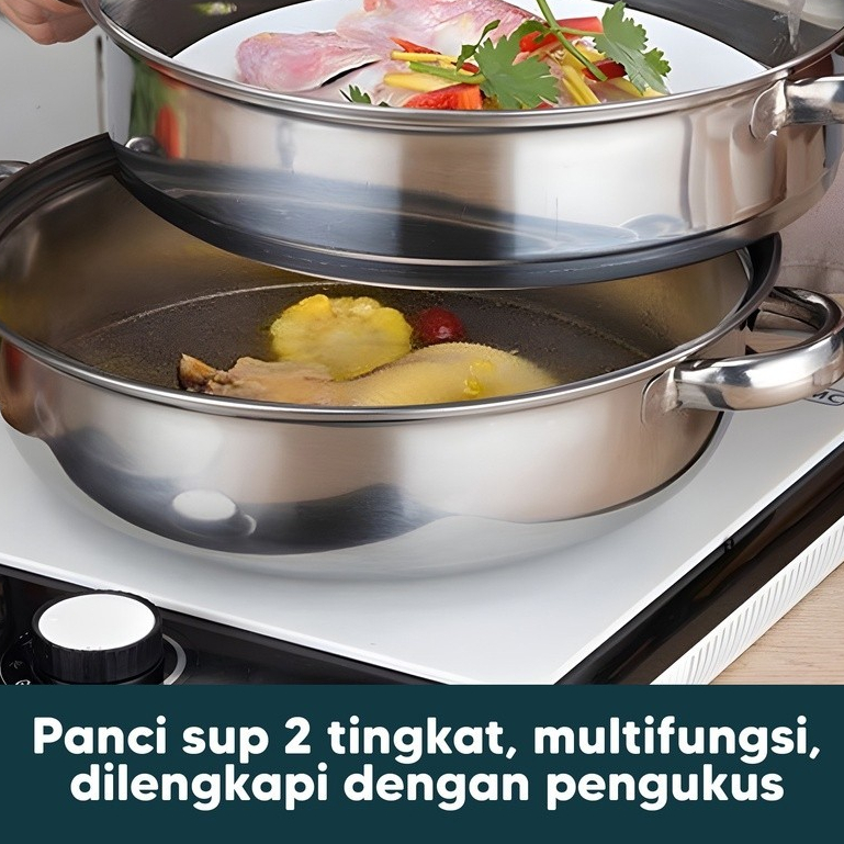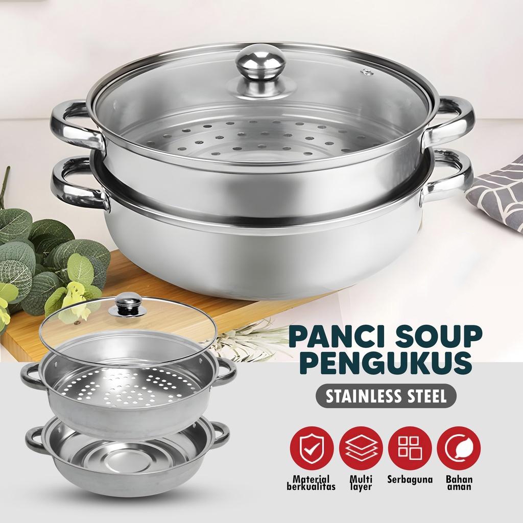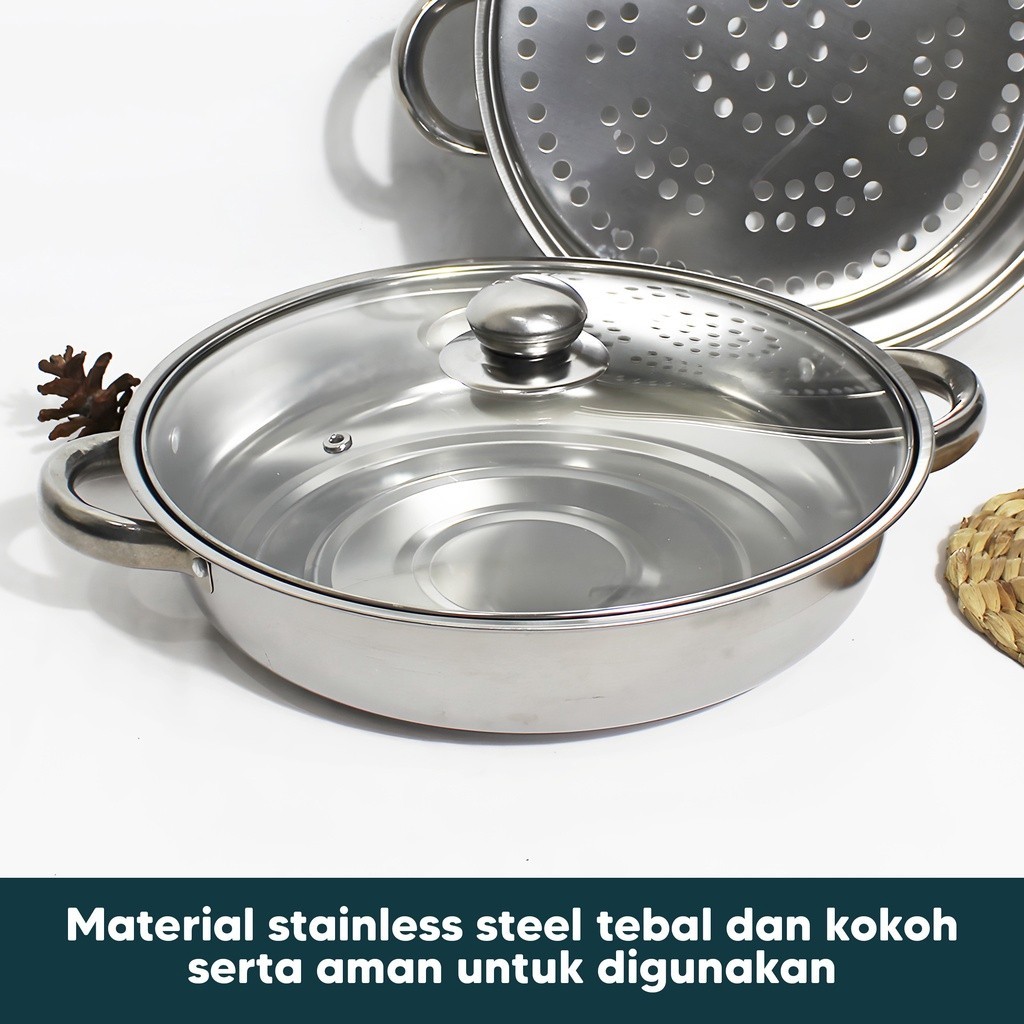 PANCI KUKUS 2 TINGKAT TUTUP KACA STEAMER STAINLESS STELL Dandang kukusan Gratis Ongkir -jMS