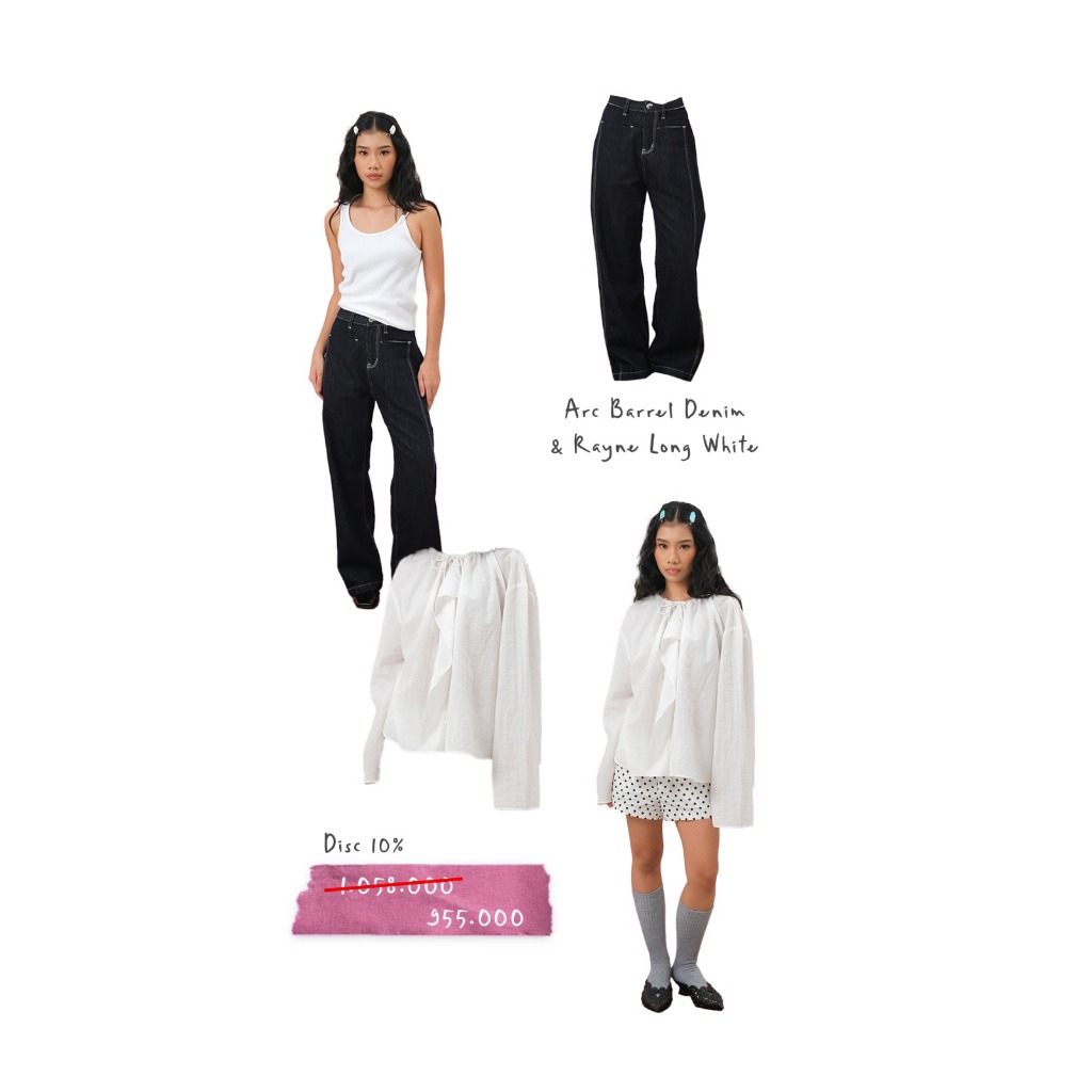 House of KYNY - Arc Denim Pants dan Rayne Long Sleeve White | Set Blouse Putih dan Loose Pants