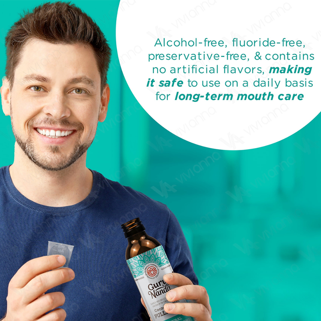 [FLASH SALE] USA GuruNanda Obat Kumur 237ml, USA Mouthwash Guru Nanda Pulling Oil, GuruNanda Coconut Mint Teeth Whitening Oral Rinse Oral Health Coconut Mint untuk Kesehatan Mulut