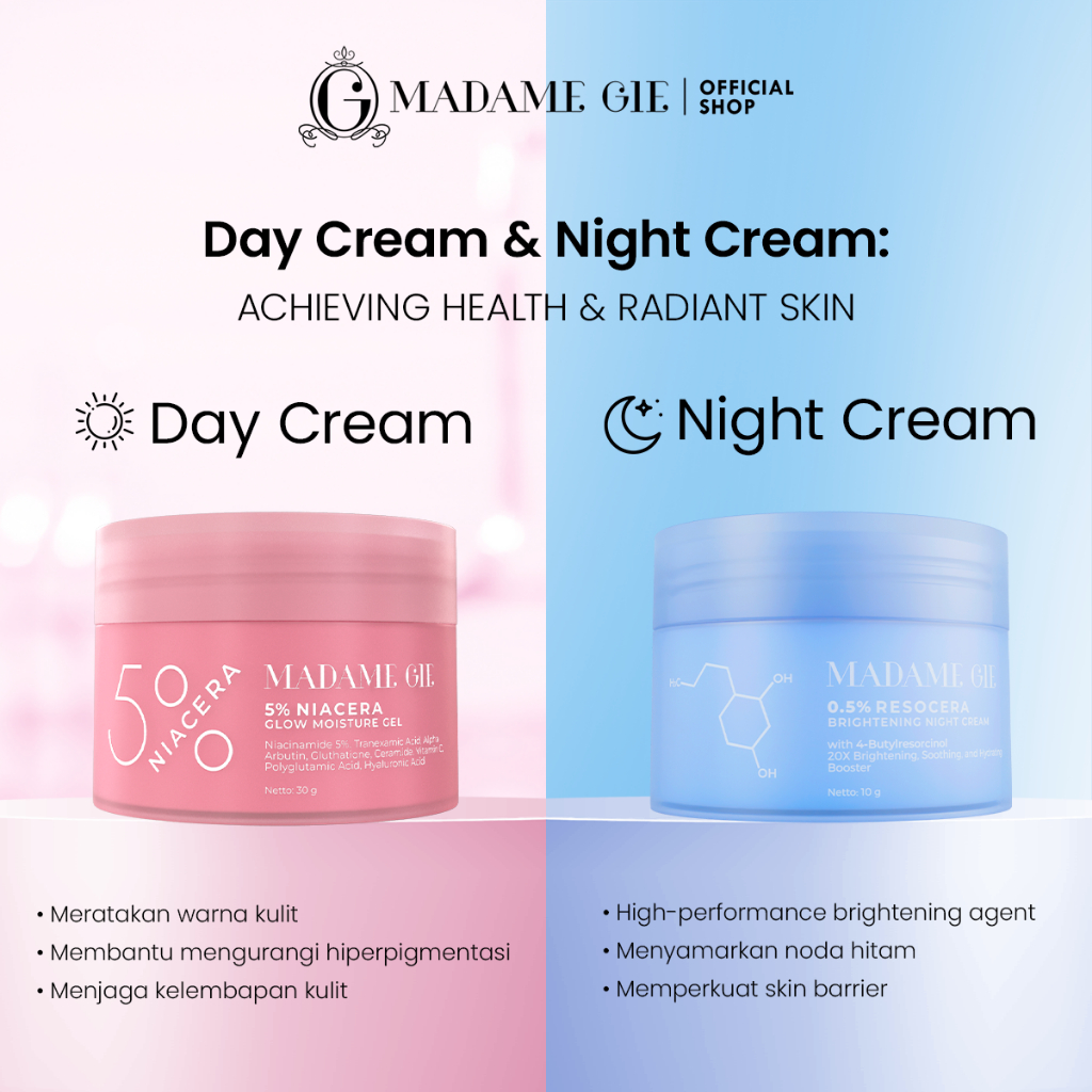 Madame Gie ResoCera Brightening Night Cream | Krim Malam Pencerah Wajah, Atasi Flek Hitam & Bekas Jerawat | Triple power formula Brightening, Hydrating & Soothing | Menjaga Skin Barrier Sehat & Melembapkan Kulit