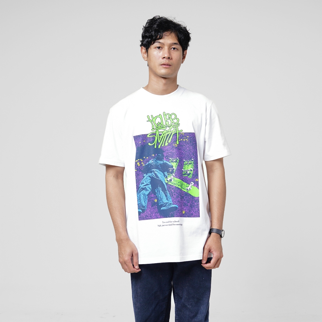 House of Smith Kaos Pria Lengan Pendek - Too Tired White #4 - T Shirt