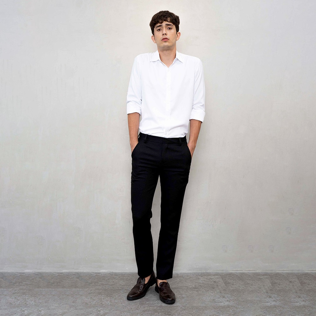 Houseofcuff Celana Bahan Formal kerja kantor hitam polos Slim fit Big Size Black Trouser