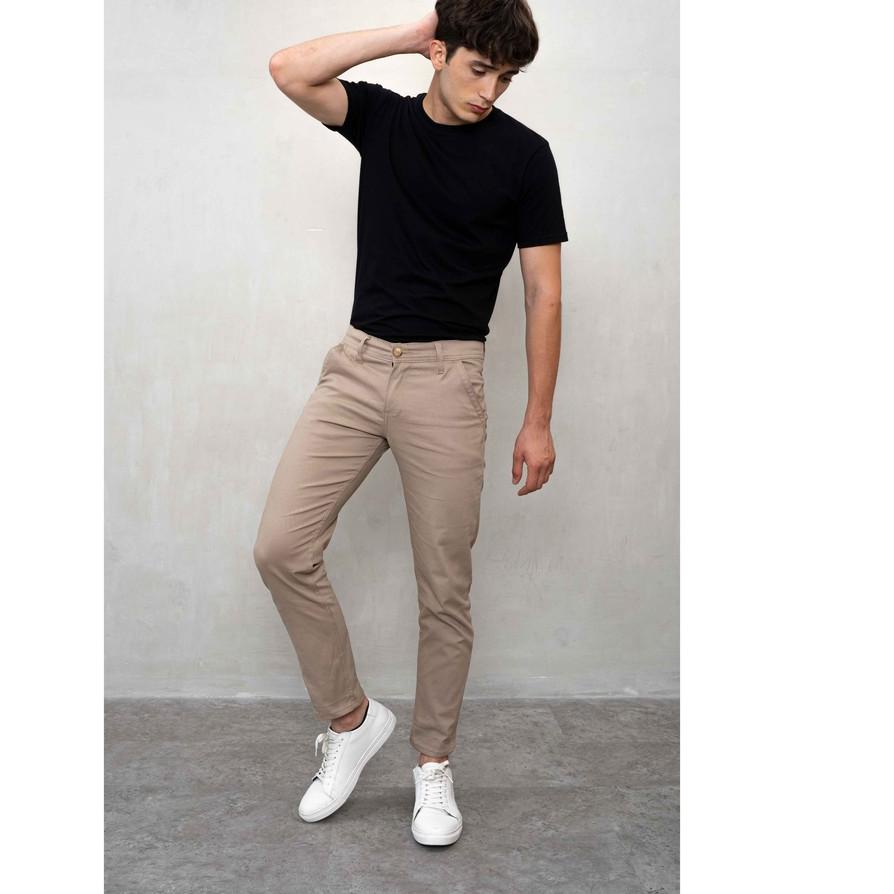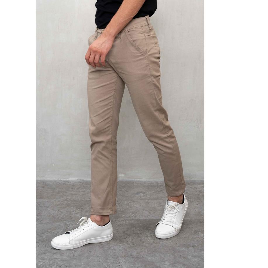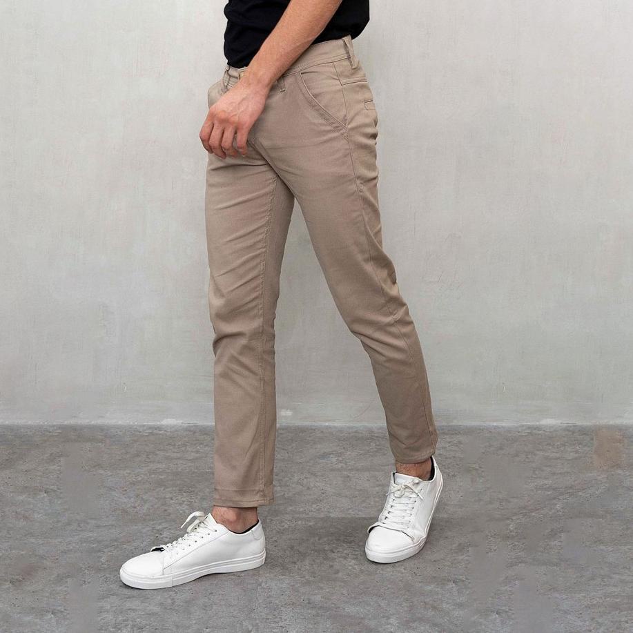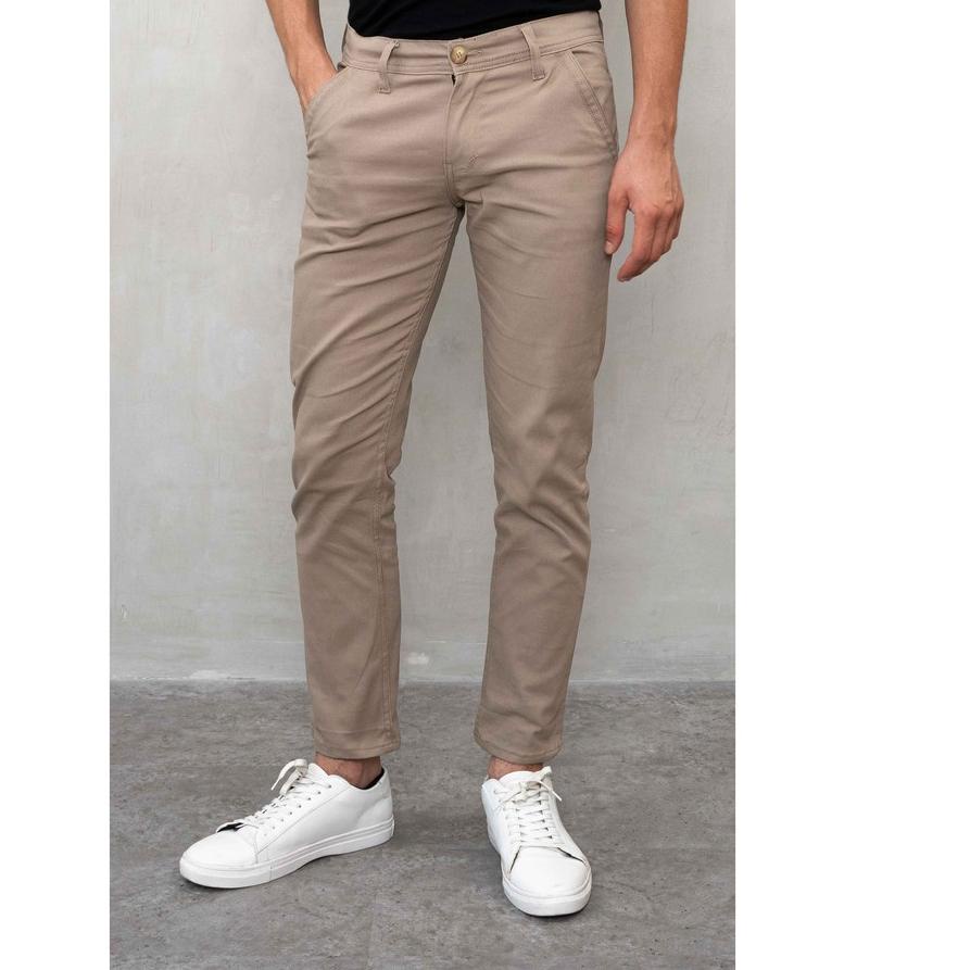 Houseofcuff Celana Panjang chino pria Slim fit Strecth Jeans Krim Gelap