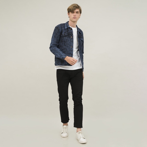 Houseofcuff Jaket Jeans Pria Polos Tebal Dilan Jaket Denim Biru Dongker Pudar