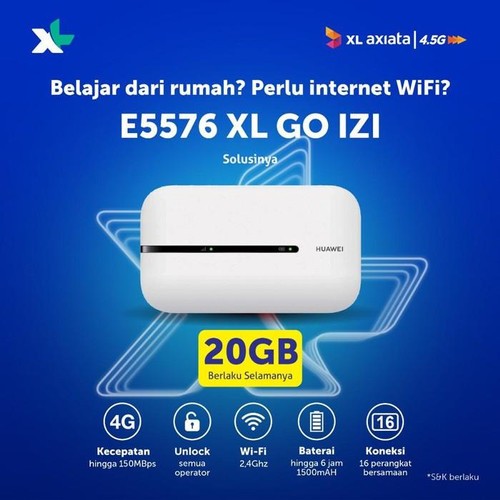 Huawei E5576 Modem Mifi 4G LTE XL Go Izi Free Kuota - Garansi Resmi