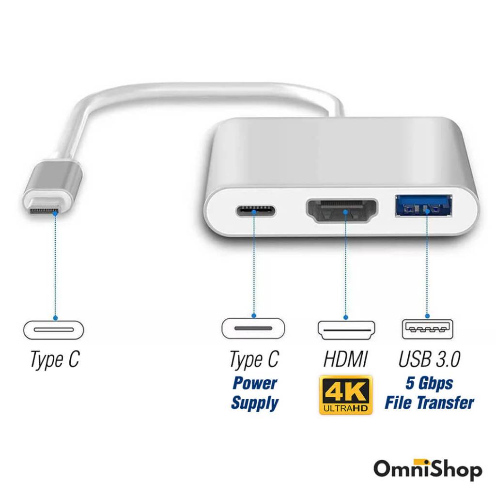 Hub Converter Type C 3 in 1 PD USB HDMI Full HD 3D 4K HP Laptop Hub Adapter Type C to HDMI