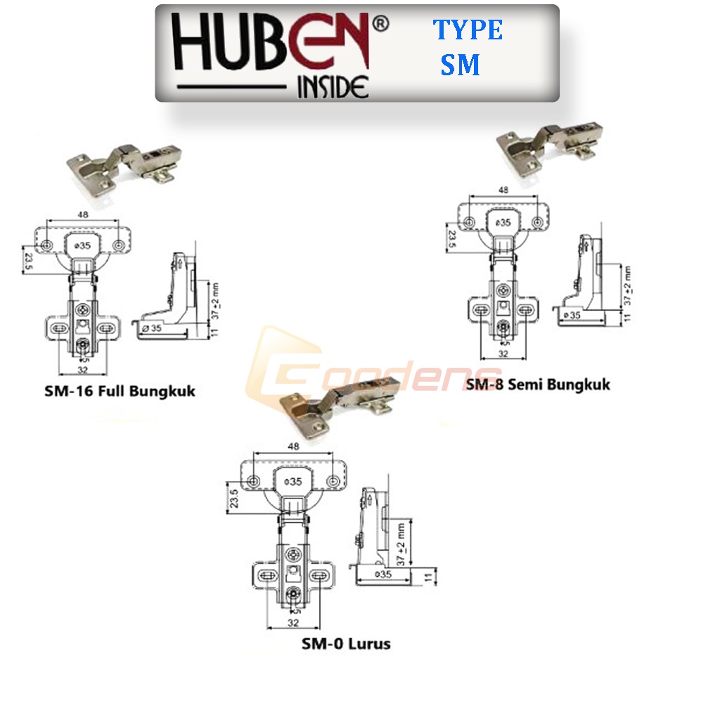 Huben SM Engsel Sendok Slow Motion Engsel Pintu Lemari Soft Close