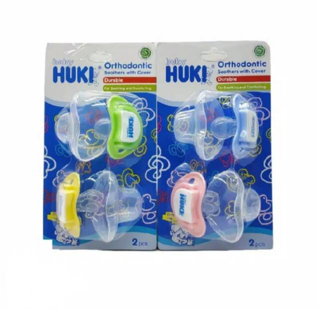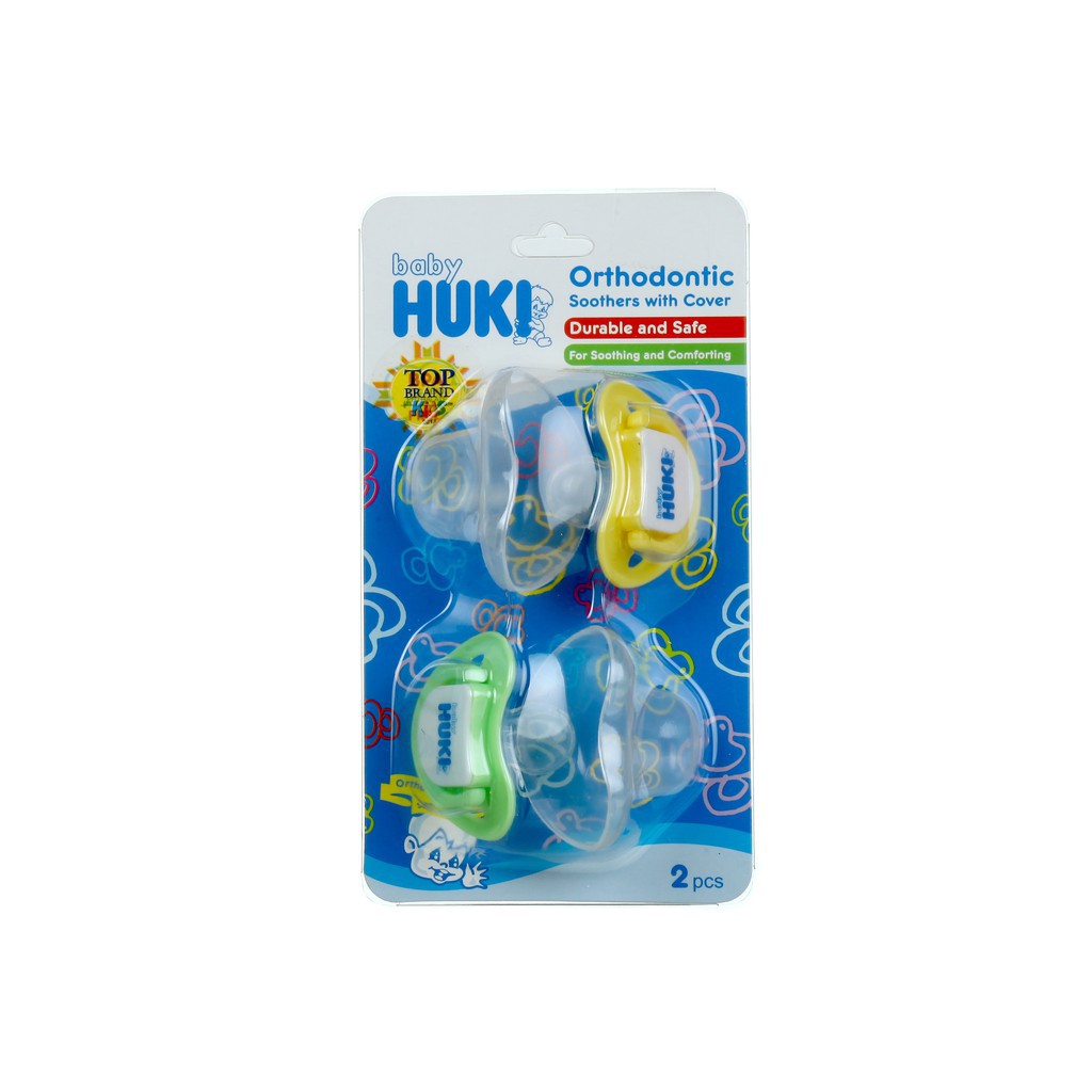 Huki Empeng Silicone Gepeng Isi 2 / HUKI Empeng Deluxe Orthodontic Soother with Cover 2 pcs Pacifier