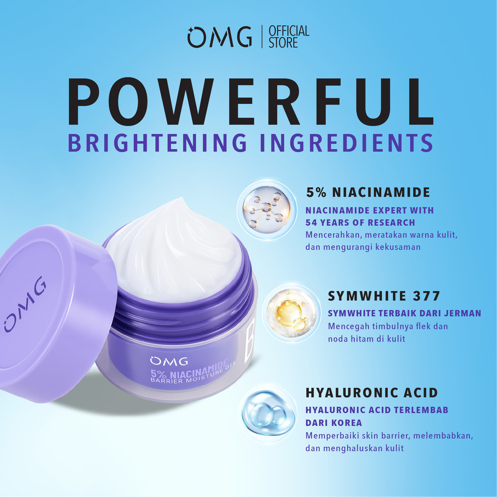 OMG OH MY GLAM Bright Barrier & Calming Moisture Gel Series 45gr || Ringan || Cepat Meresap | Mengurangi Jerawat | 2% Cica-B5 Calming Moisturizer | 5% Niacinamide Bright Barrier Moisturizer | Moisturizer Gel 45 g | Pelembab Wajah - Cepat Meresap - Lembab