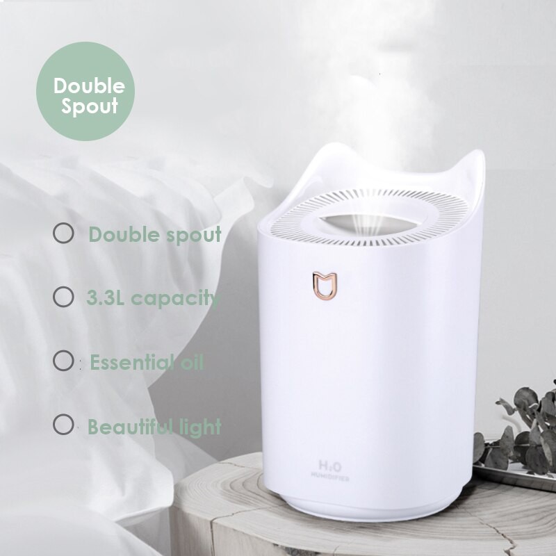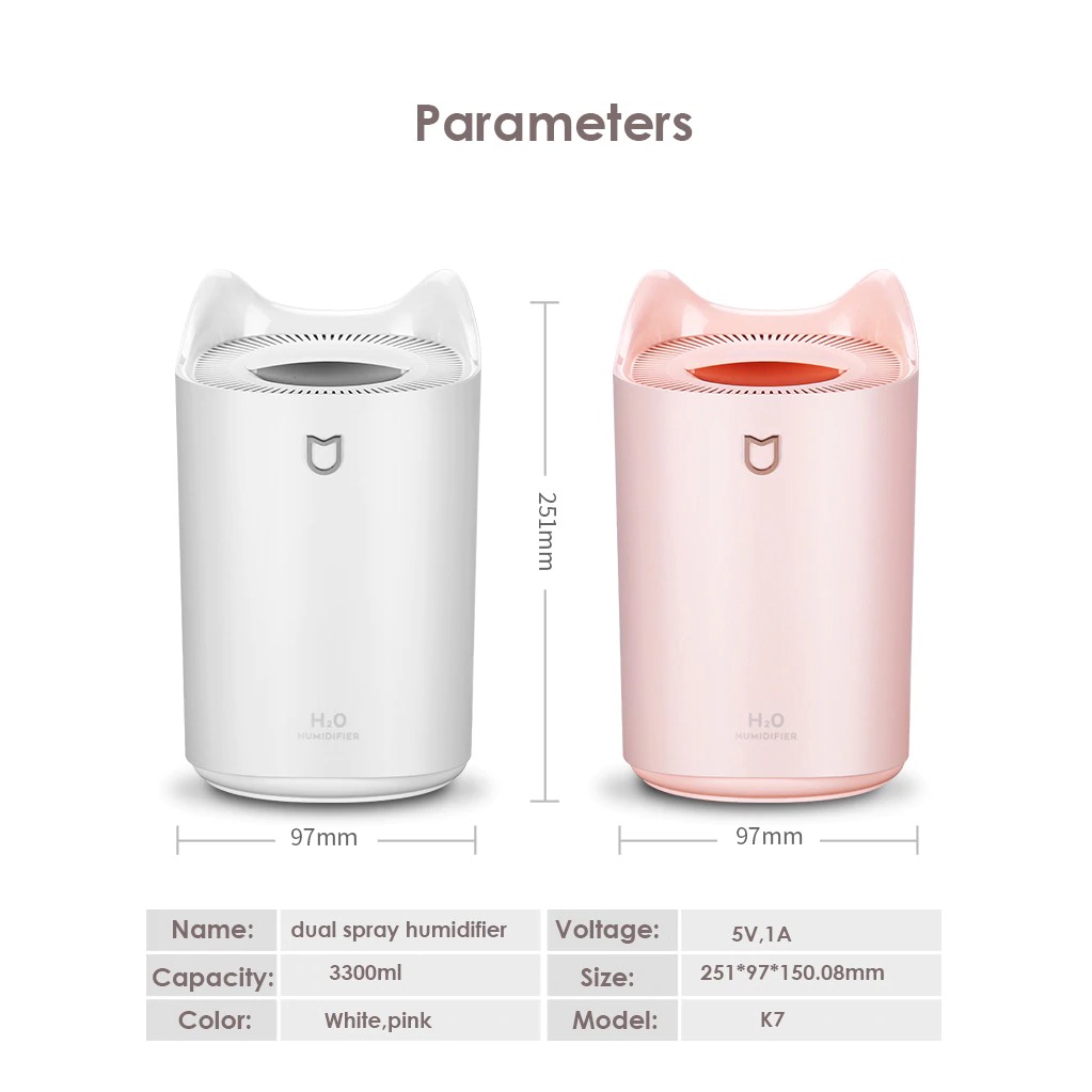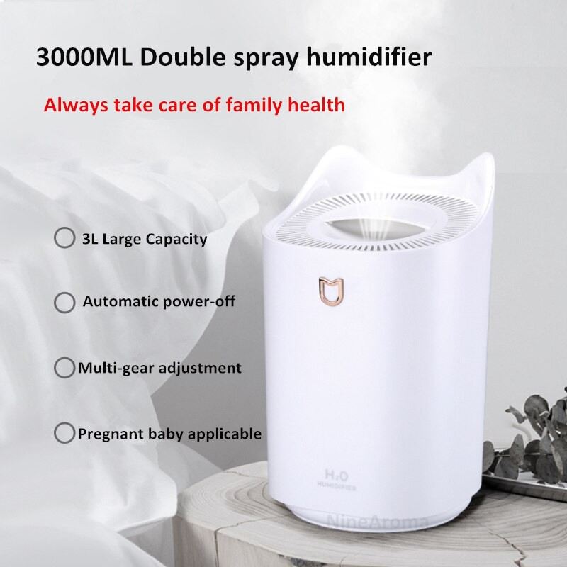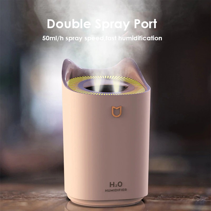 Humidifier H2O Ultrasonic Aromatherapi Diffuser Double Spray Large 3L Colorful Night Light
