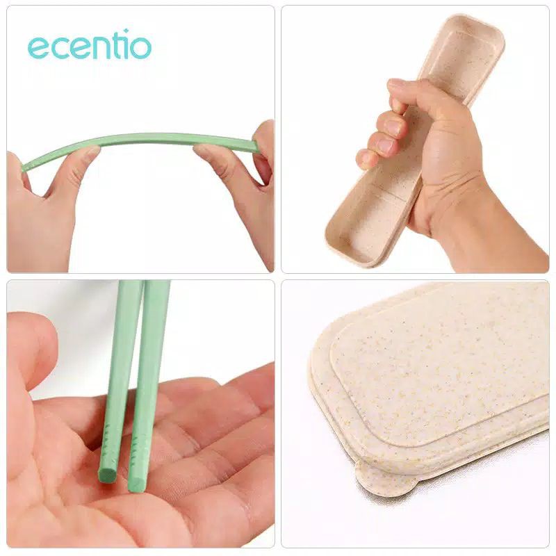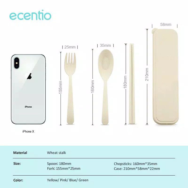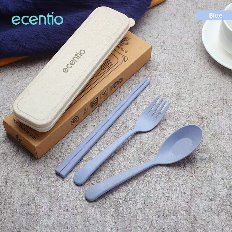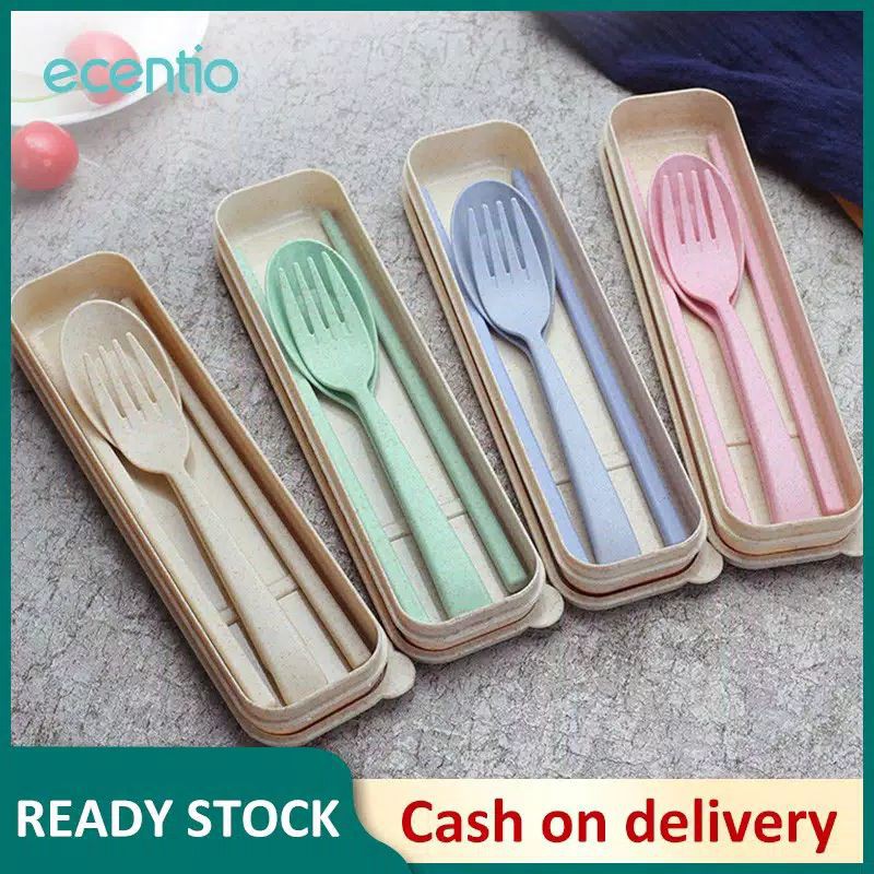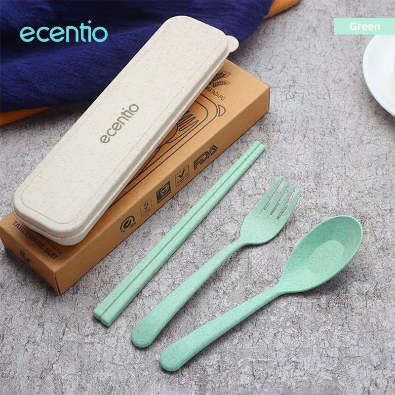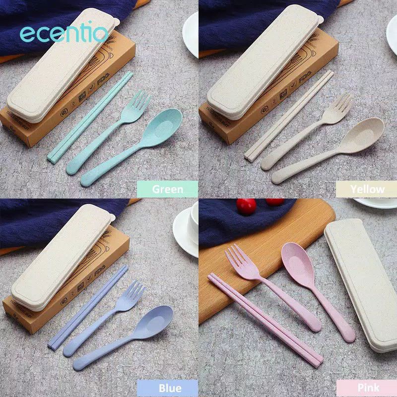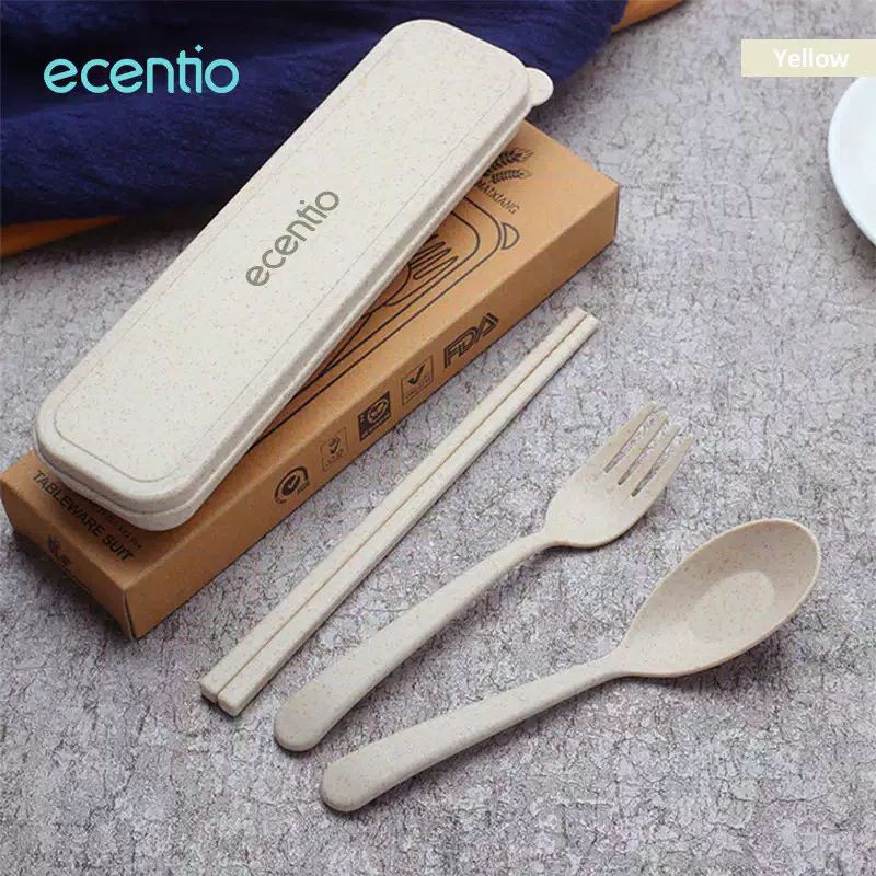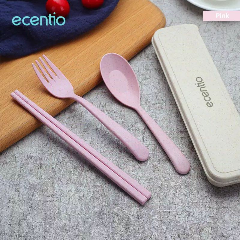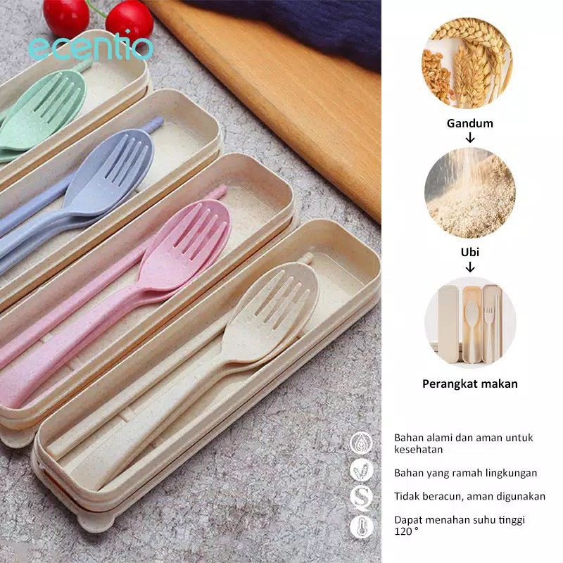 Ecentio 3Pcs Set Alat Makan Sendok Garpu Sumpit / Wheat Straw Set Cutlery Spoon