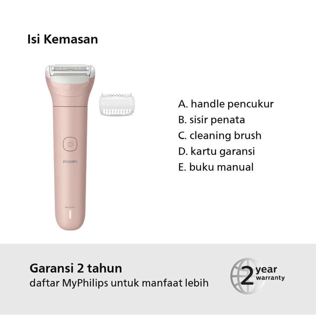 Philips | Lady Shaver 6000 | Alat Cukur Elektrik Wanita | Pencukuran Lembut, Cepat, dan Nyaman | BRL128/10