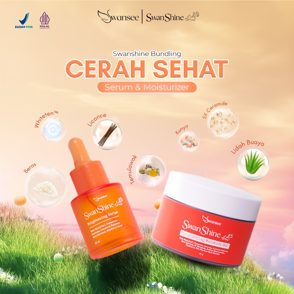 SwanShine Glowing Set – Serum & Moisturizer dengan Ceramide 5x, Kunyit Alami