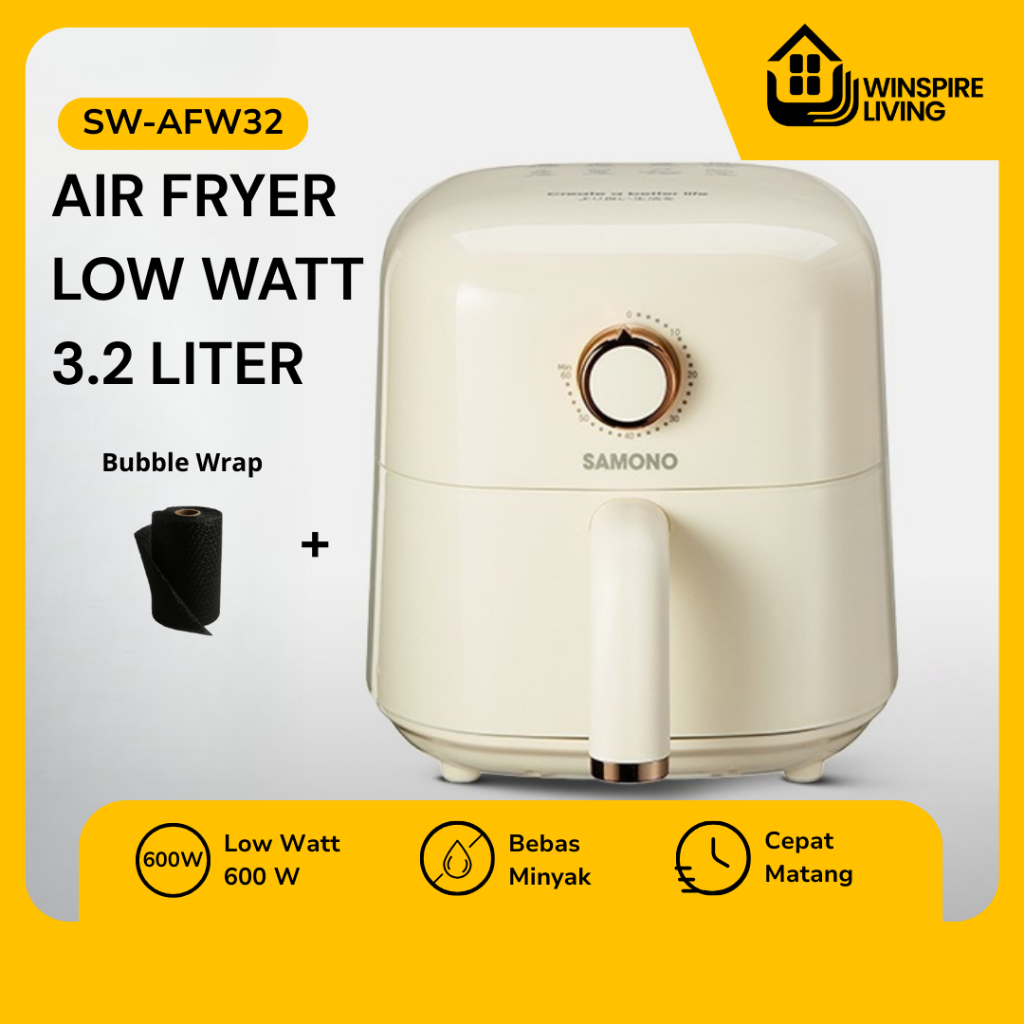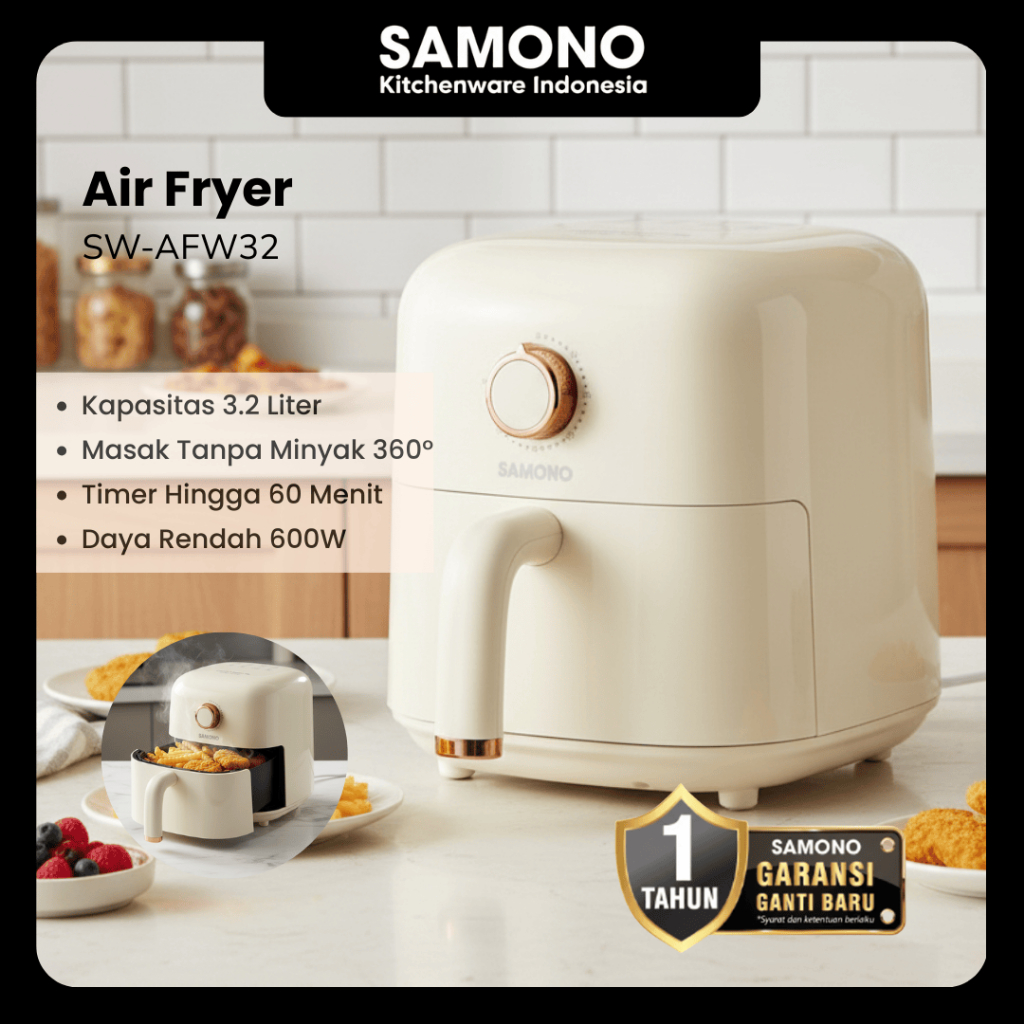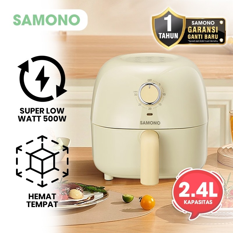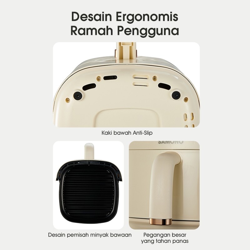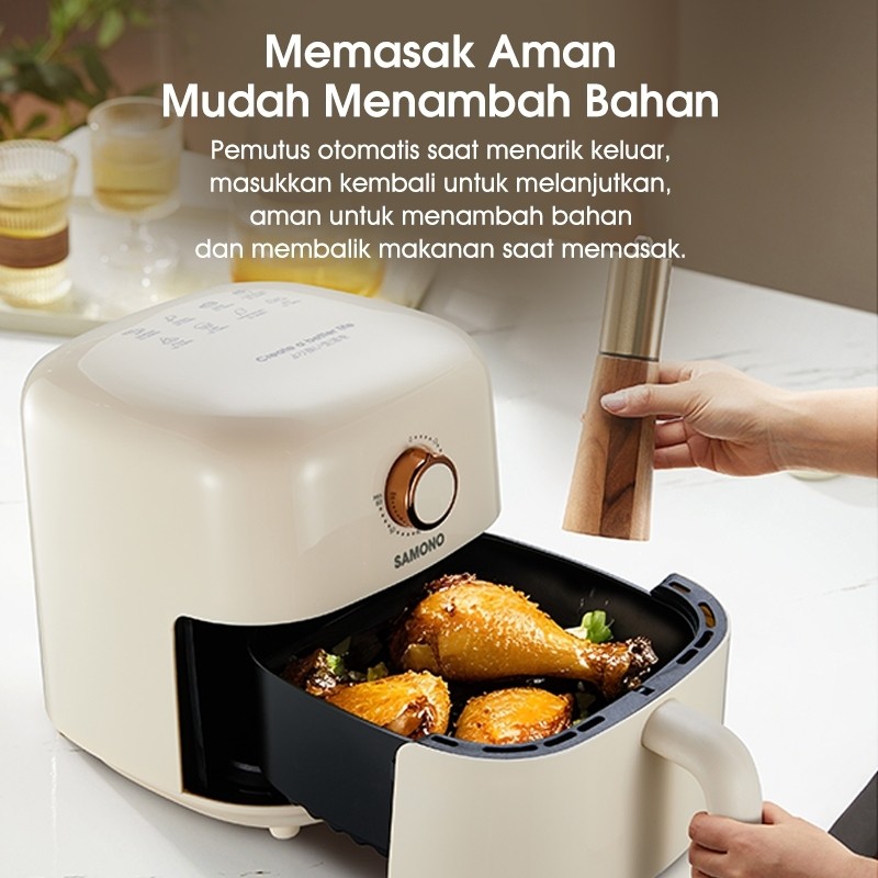 SAMONO Penggorengan Udara Air Fryer 3.2L 600W Hemat Listrik, Anti Lengket, Cocok Ayam, Kentang dan Frozen Food Air Fryer Compact Masak Tanpa Minyak 360° Masak Sehat untuk Keluarga, Timer 60 Menit