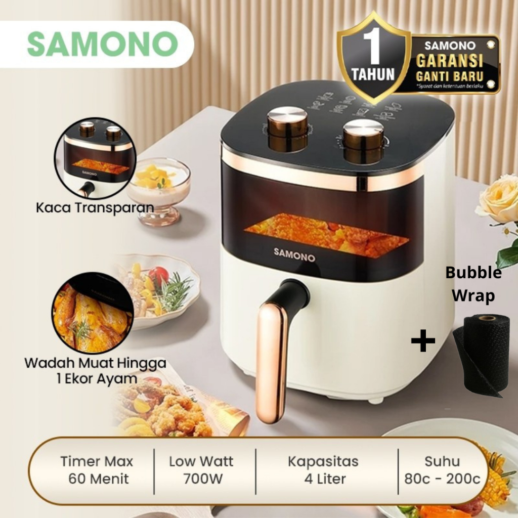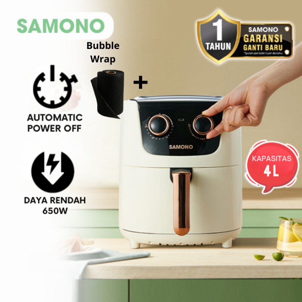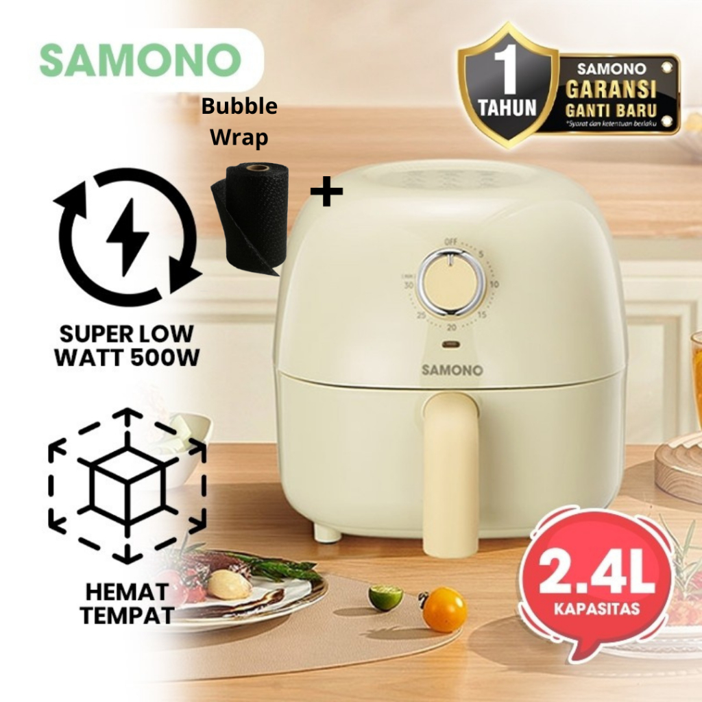 SAMONO Penggorengan Udara Air Fryer 3.2L 600W Hemat Listrik, Anti Lengket, Cocok Ayam, Kentang dan Frozen Food Air Fryer Compact Masak Tanpa Minyak 360° Masak Sehat untuk Keluarga, Timer 60 Menit