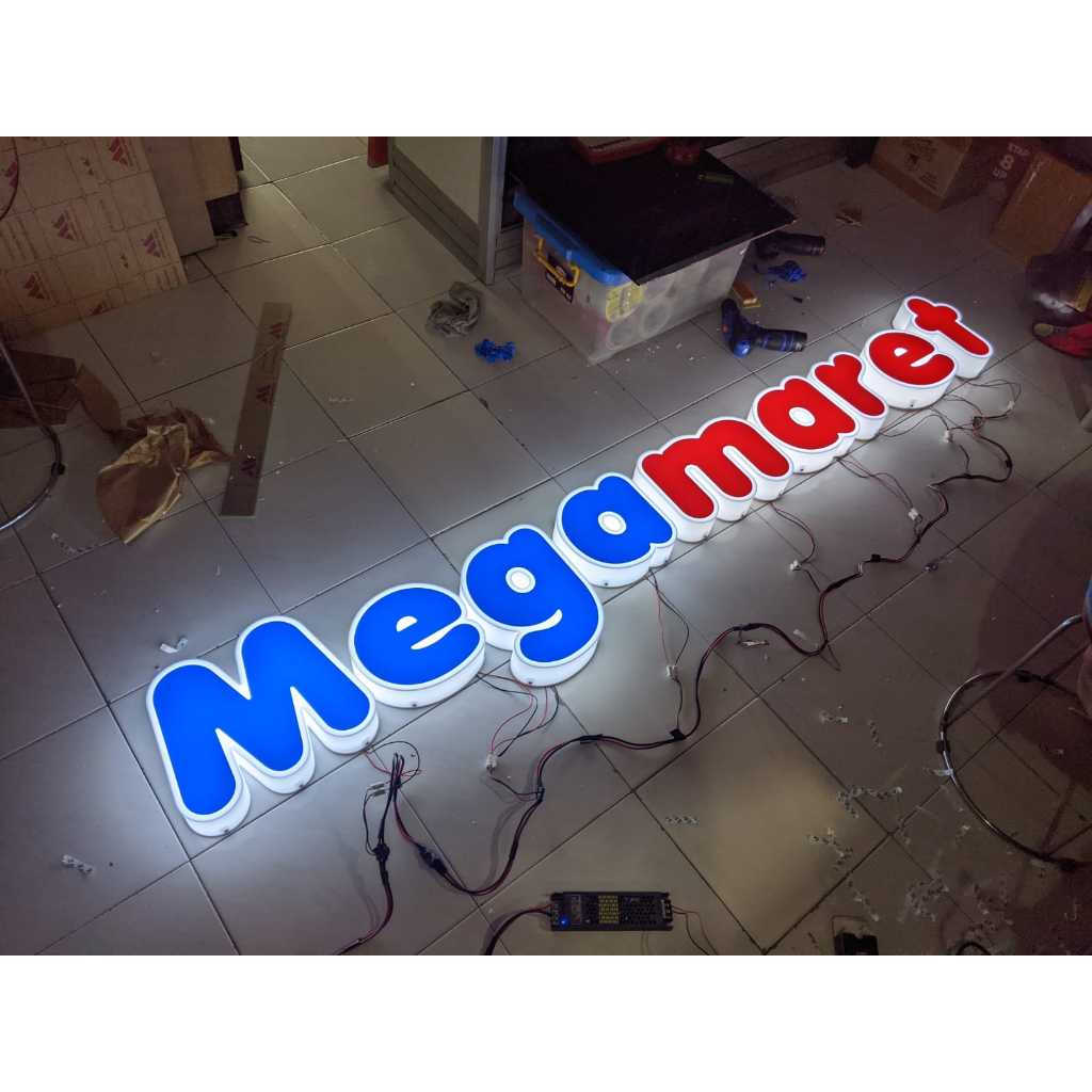Huruf Timbul 3D + Stiker + Led ( Menyala )
