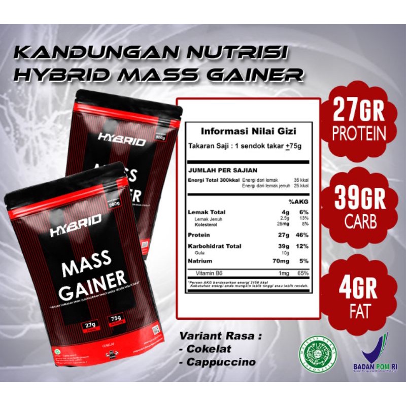 Hybrid Mass Gainer 2 lbs (900 gram) Cokelat/Cappucino Suplemen fitness olahraga
