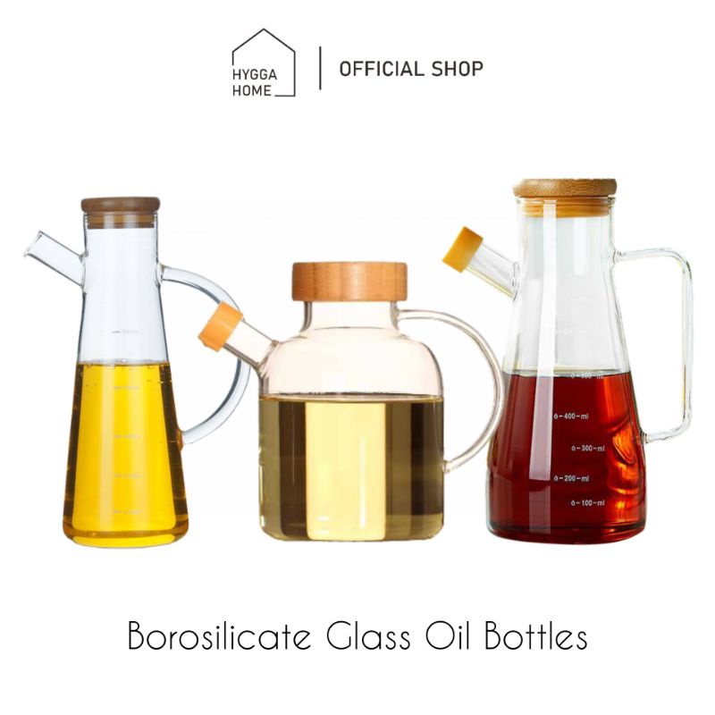 Hygga Home Glass Oil Bottle with bamboo cover/ Botol Minyak Kaca tutup Bambu