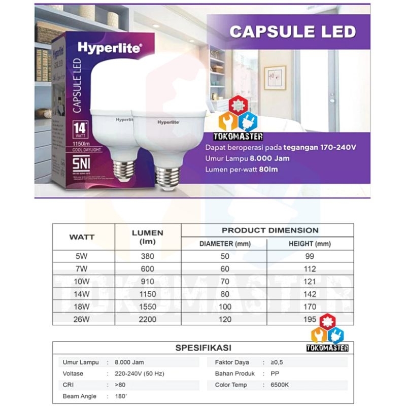 Hyperlite Bohlam Lampu Led Capsule Sertifikasi SNI Kapsul LED 5-7-10-14-18-26 watt 5w 7w 10w 14w 18w 26w