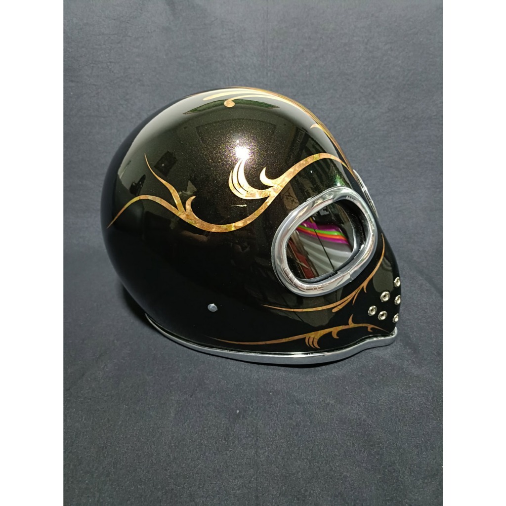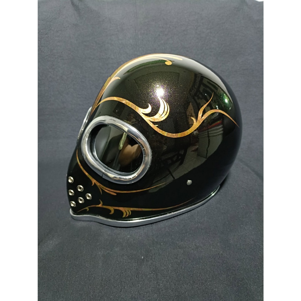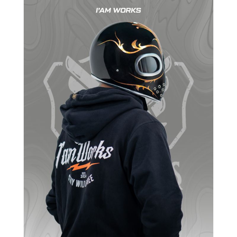 I'AM WORKS | Helm Custom Dewasa Pria Wanita SNI Bahan Fiber Glass Kevlar Alien Batik Gold Leaf (APX-03)