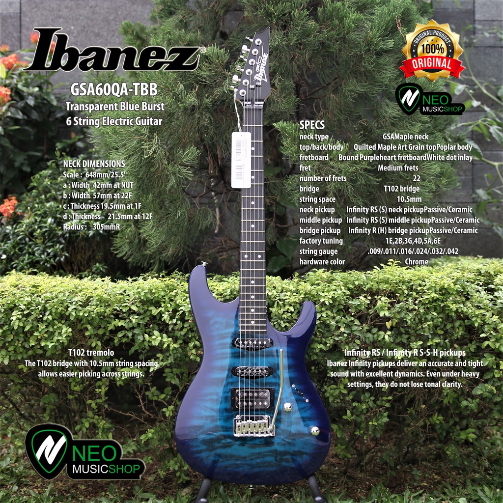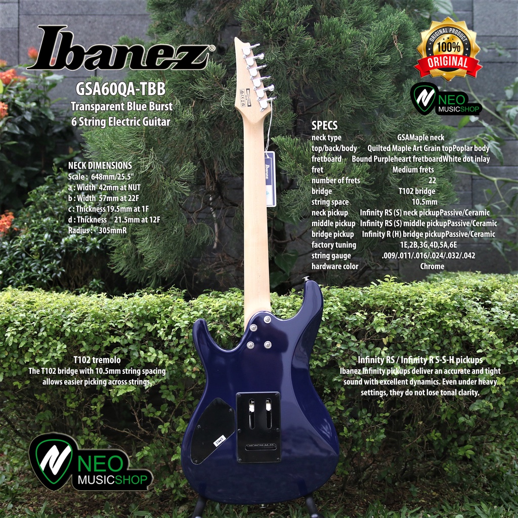 IBANEZ GSA60QA TBB Transparent Blue Burst 6 Strings Electric Guitar