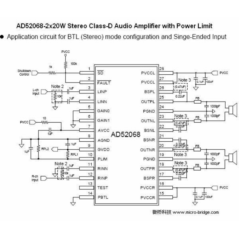 IC ESMT AD52068 2x20W Stereo Class-D Audio Amplifier dgn Power