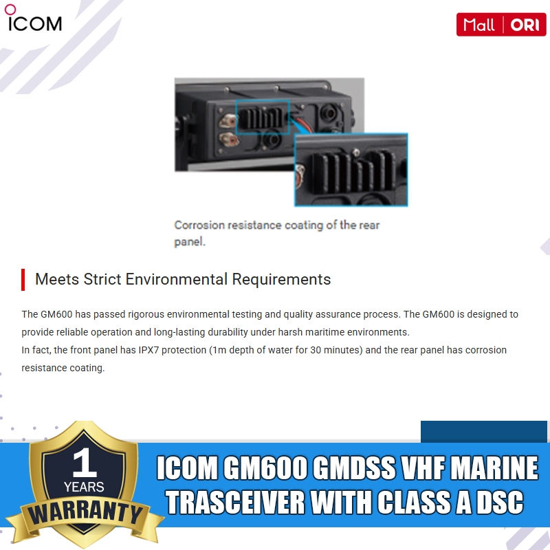 ICOM Ic GM600 GM 600 GM-600 GMDSS Vhf Transceiver with Class A Dsc Radio Rig Icom Marine Vhf Gm600 Original Garansi Resmi
