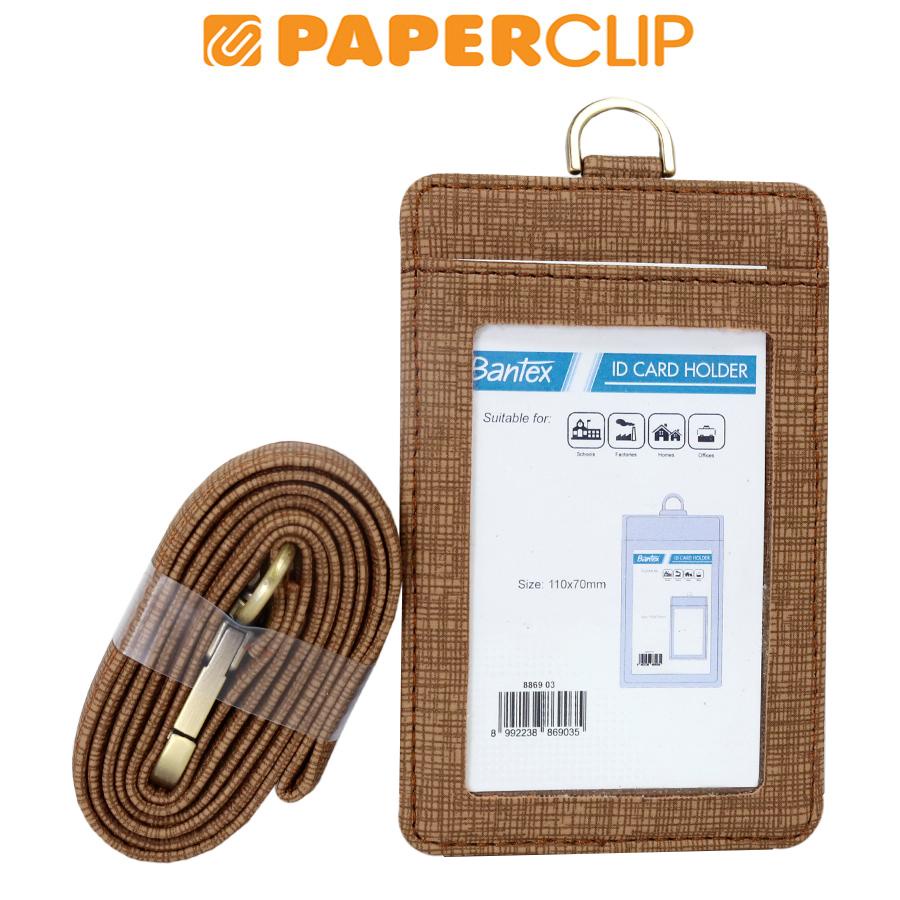 ID CARD BANTEX LEATHER 8869 PORTRAIT + LANYARD 03 BROWN