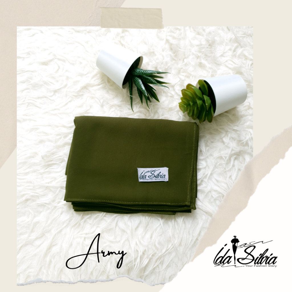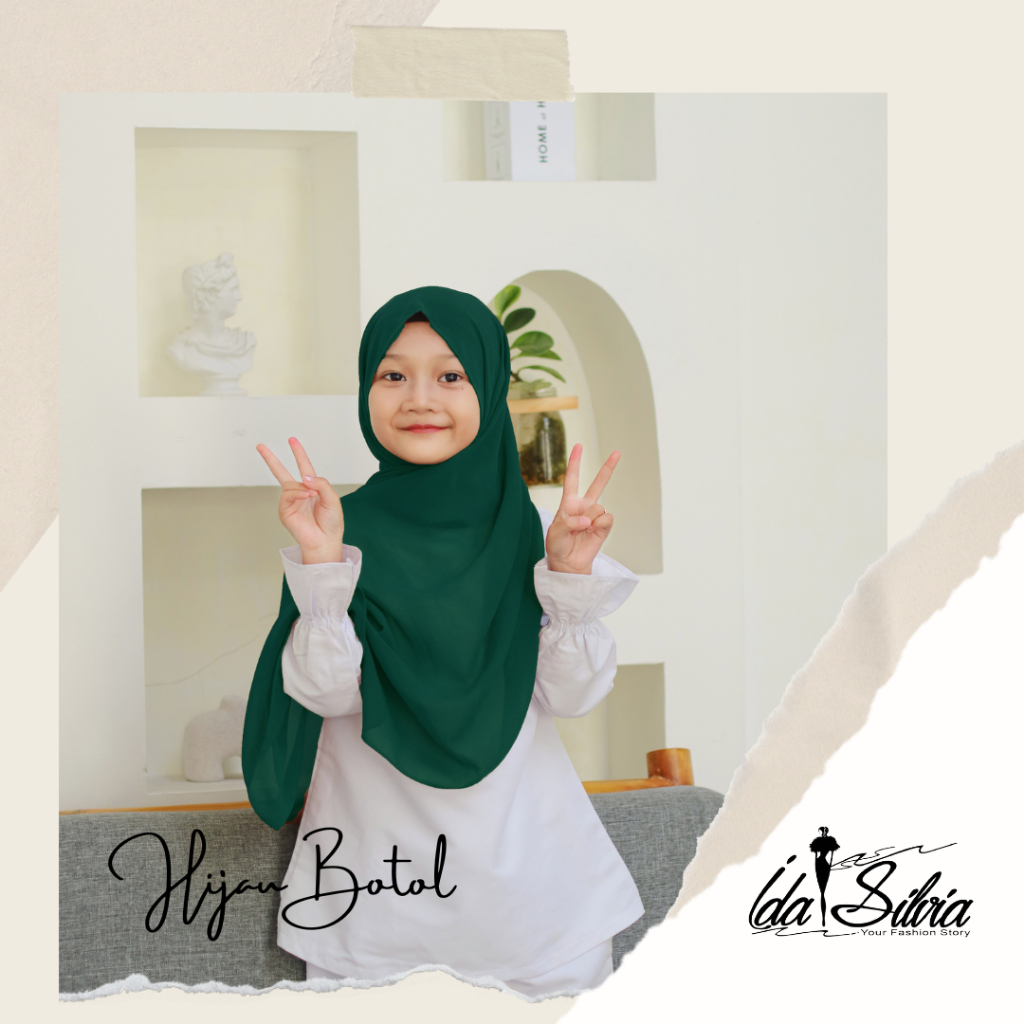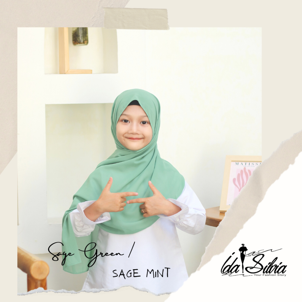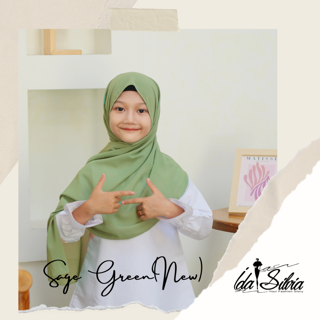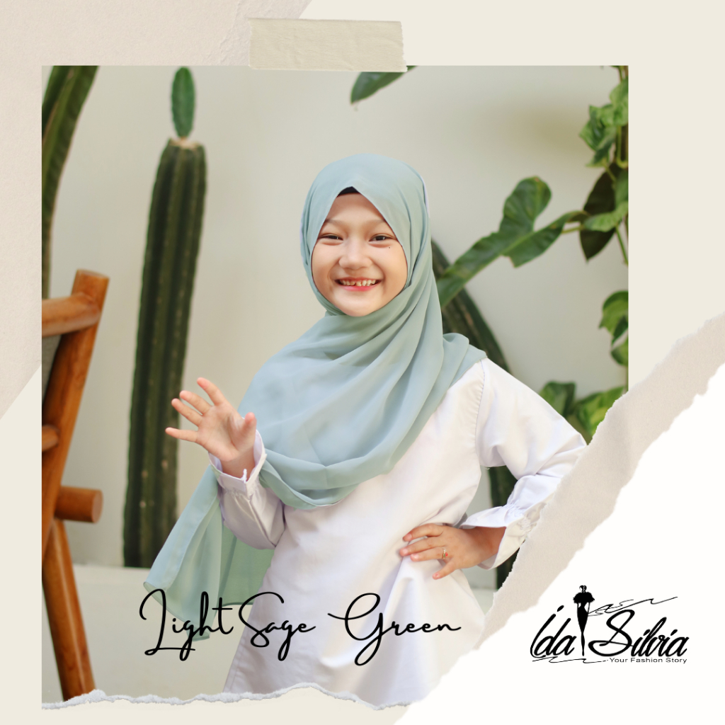 IDASILVIA - Pashmina Anak Basic Ceruti Babydoll Premium / Pasmina Ceruty Baby doll Kid shawl / Hijau Wardah green Dusty soft Olive Blue Sky Broken White Sage Green Navy kubus light sage merah soft gray grey abu-abu lilac coksu pink broken white black