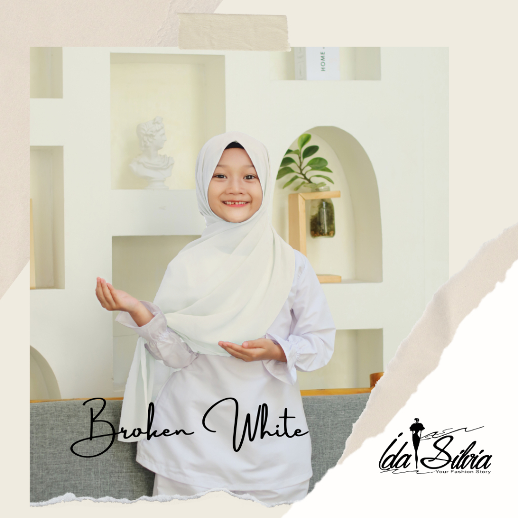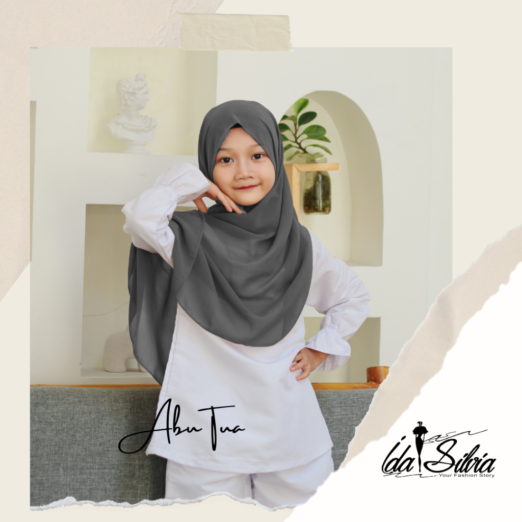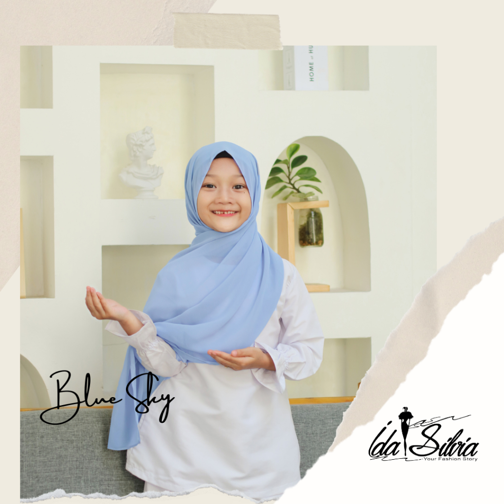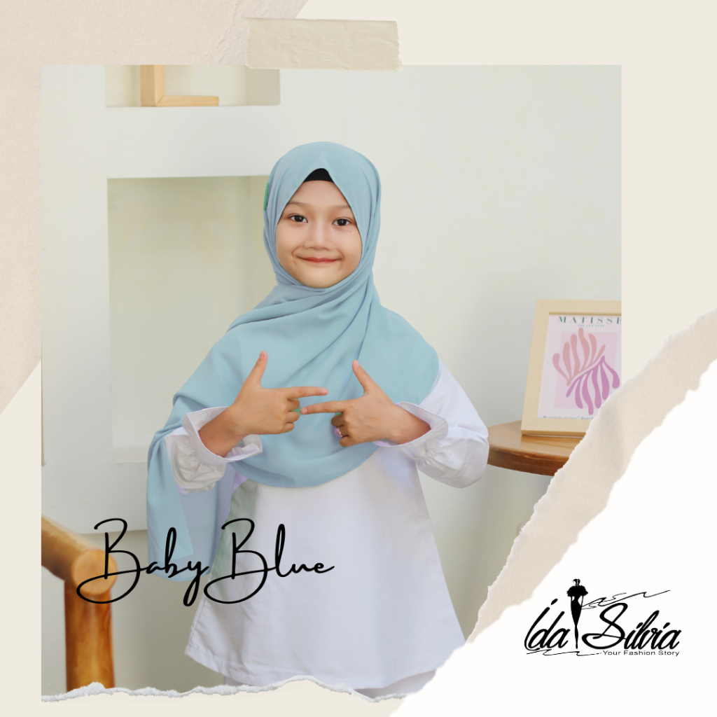IDASILVIA - Pashmina Anak Basic Ceruti Babydoll Premium / Pasmina Ceruty Baby doll Kid shawl / Hijau Wardah green Dusty soft Olive Blue Sky Broken White Sage Green Navy kubus light sage merah soft gray grey abu-abu lilac coksu pink broken white black