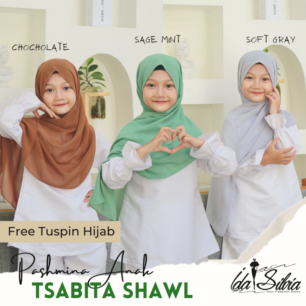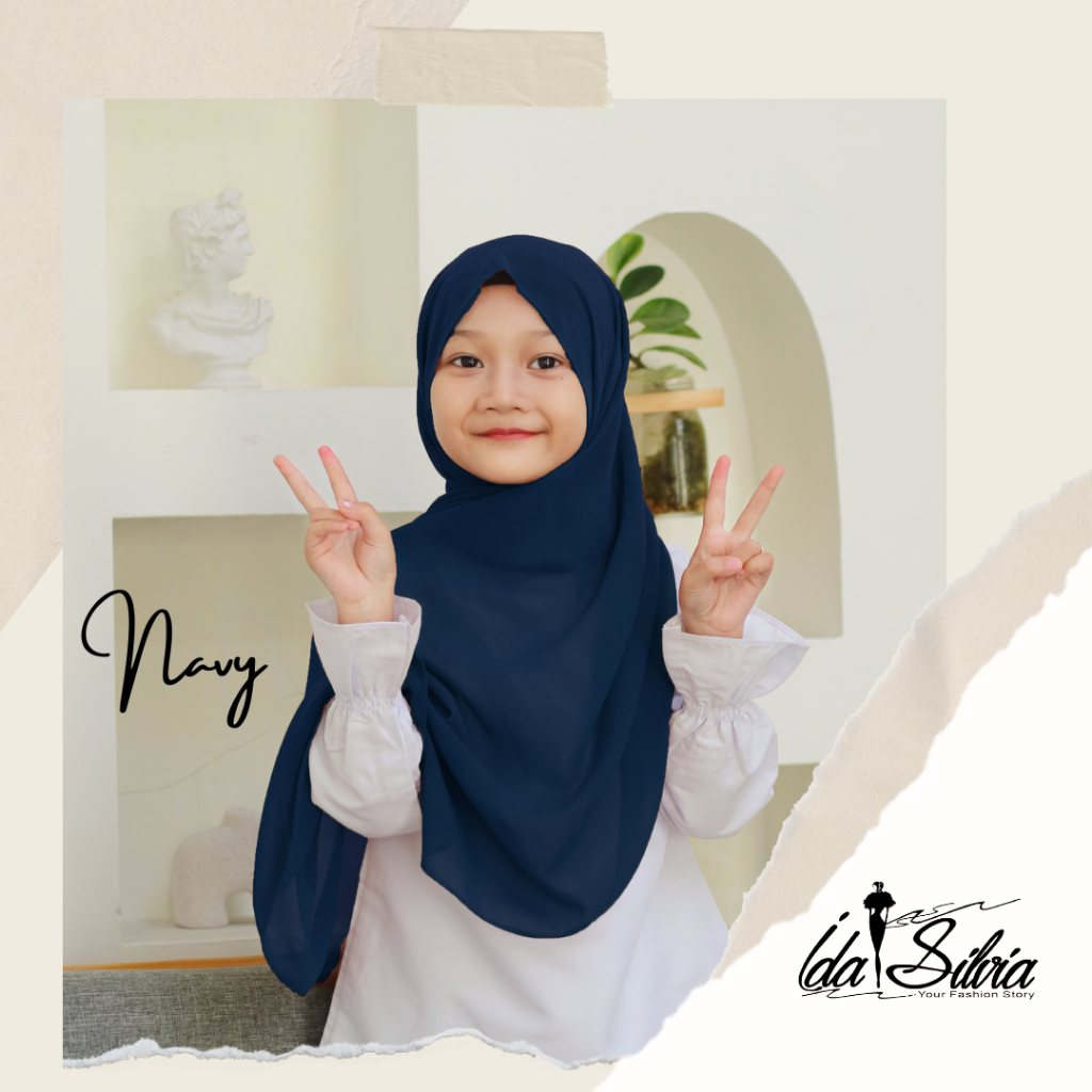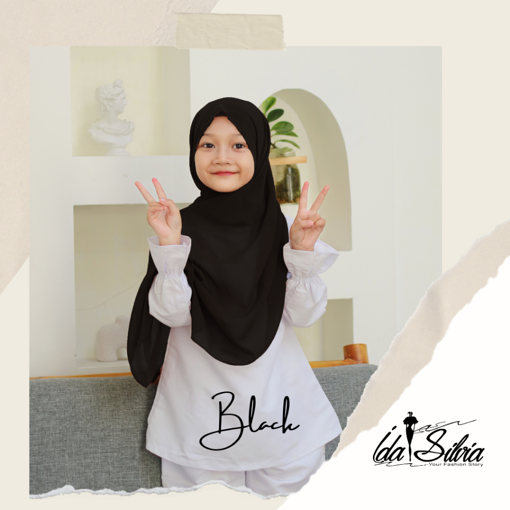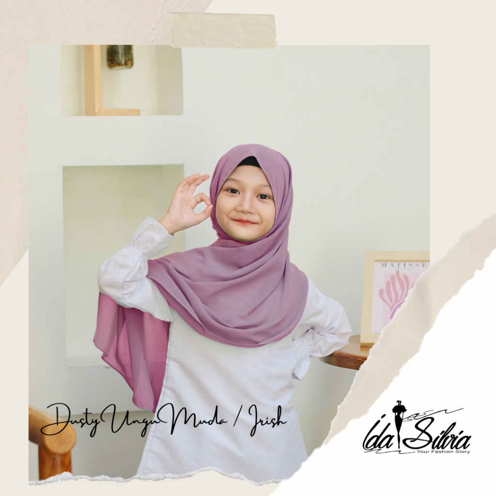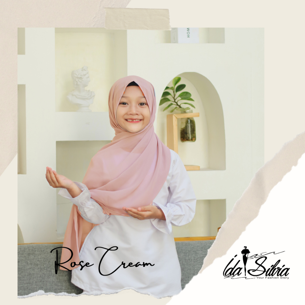 IDASILVIA - Pashmina Anak Basic Ceruti Babydoll Premium / Pasmina Ceruty Baby doll Kid shawl / Hijau Wardah green Dusty soft Olive Blue Sky Broken White Sage Green Navy kubus light sage merah soft gray grey abu-abu lilac coksu pink broken white black