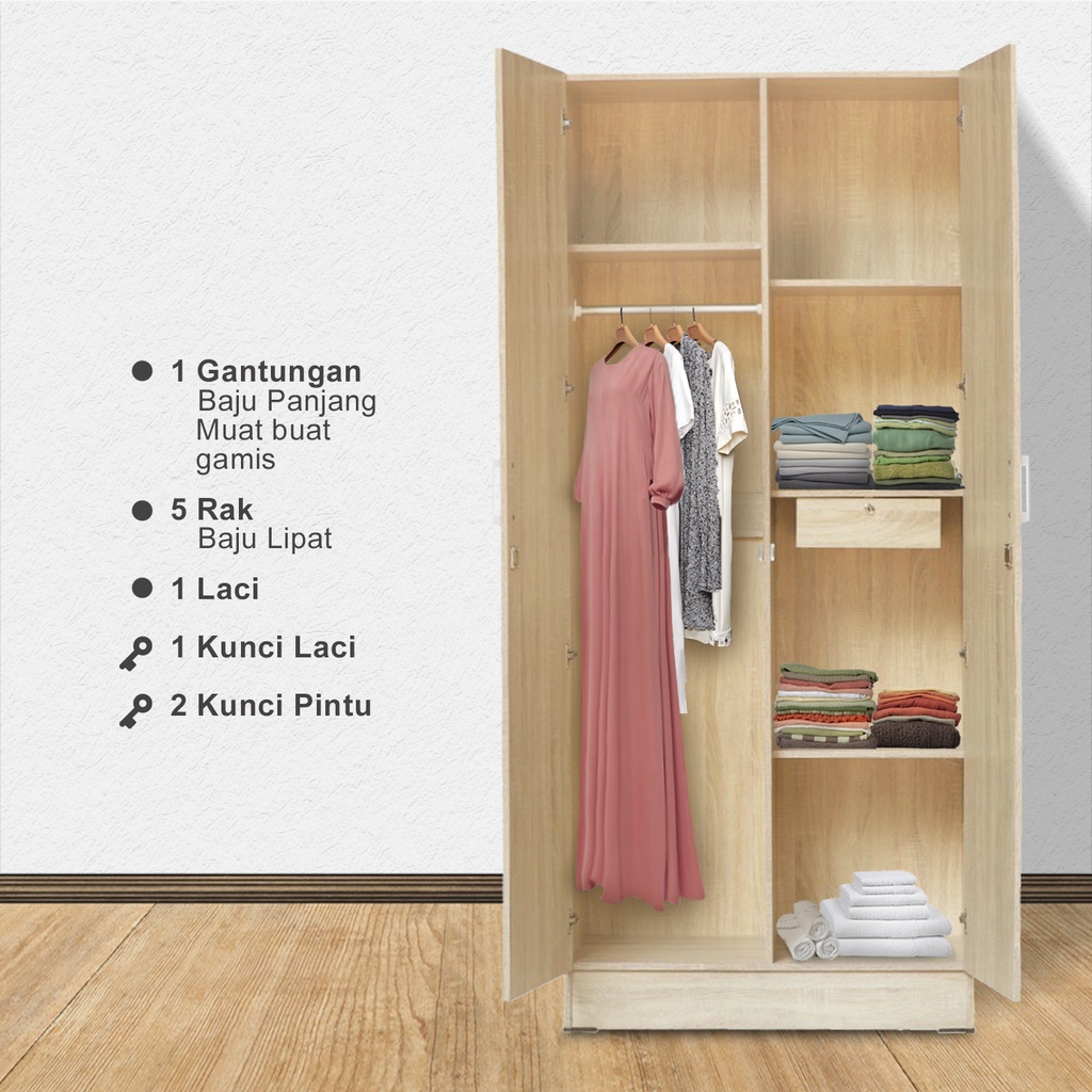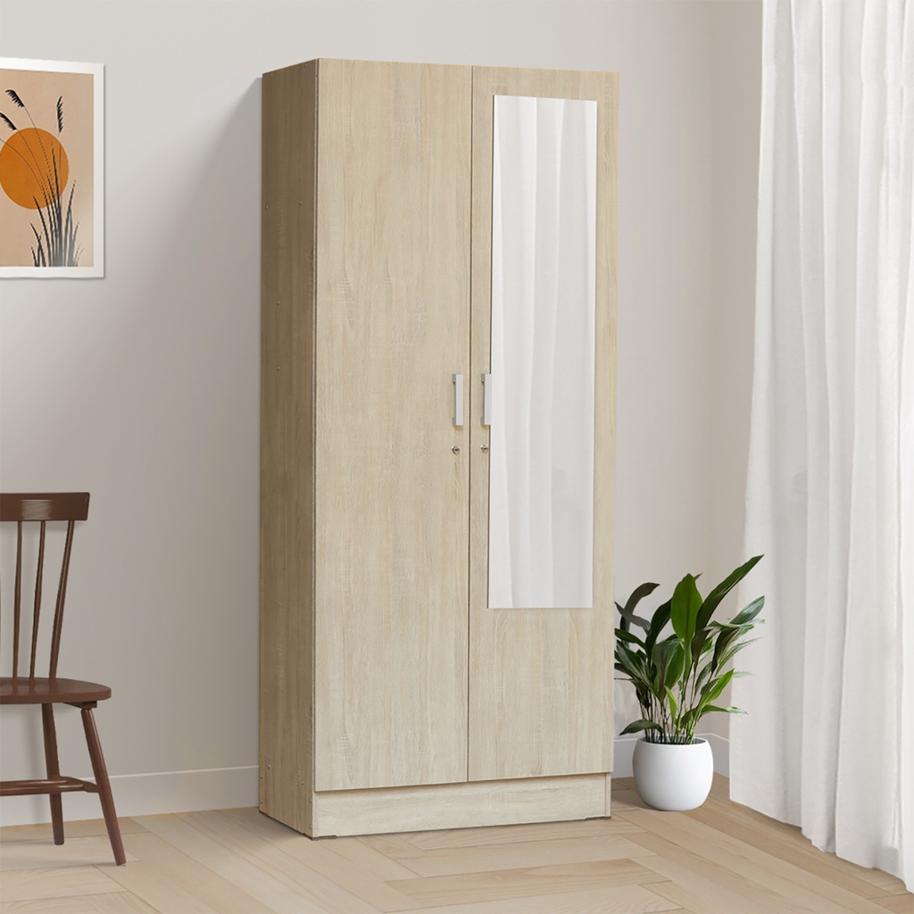 IDEA Furniture WANAKA Lemari Pakaian Baju FULL KAYU 2 / 3 Pintu Polos Cermin Putih Modern Minimalis