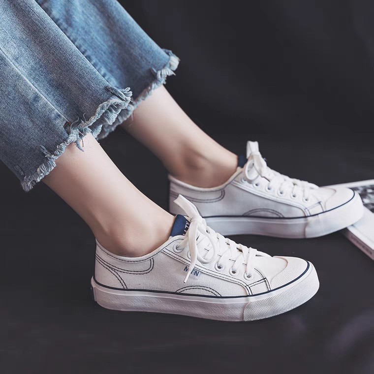 IDEALIFESHOES Sepatu Wanita Sneaker Putih Garis Biru Import Sport Sepatu Casual Korea Style Murah