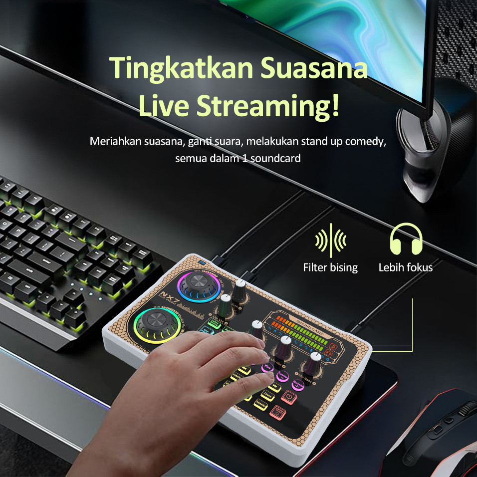 IDEELAB-NX7 Sound Card 5V Black Mikrofon Suara Antarmuka Audio Mixer Kartu Suara Mixer Amplifier Cocok untuk Ponsel dan Komputer Rekaman Langsung Karaoke Podcast