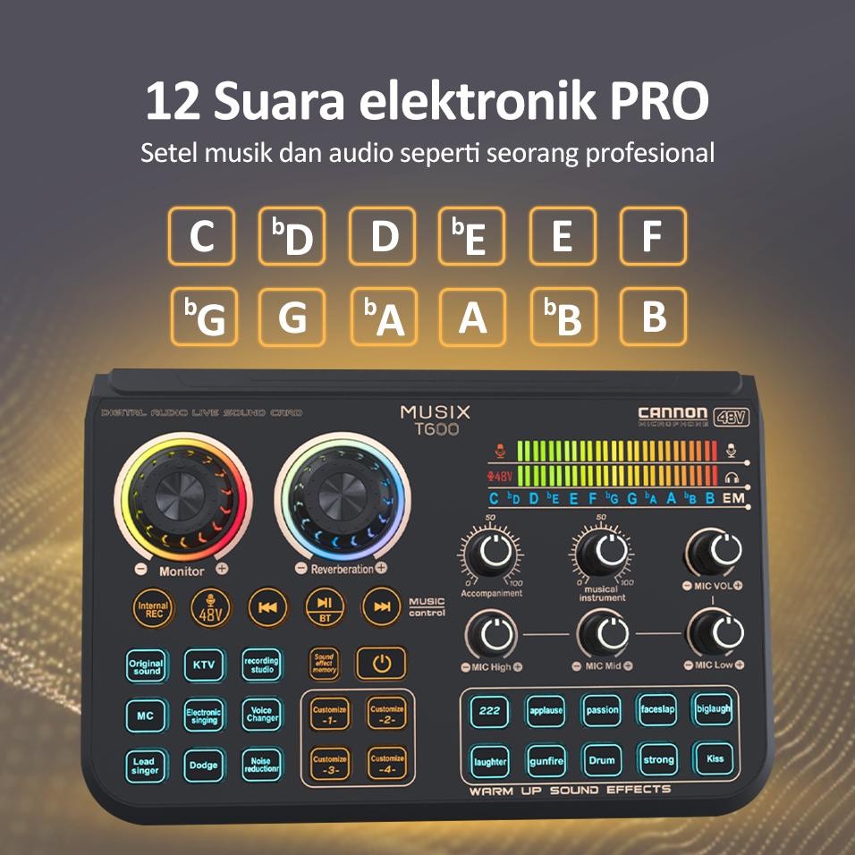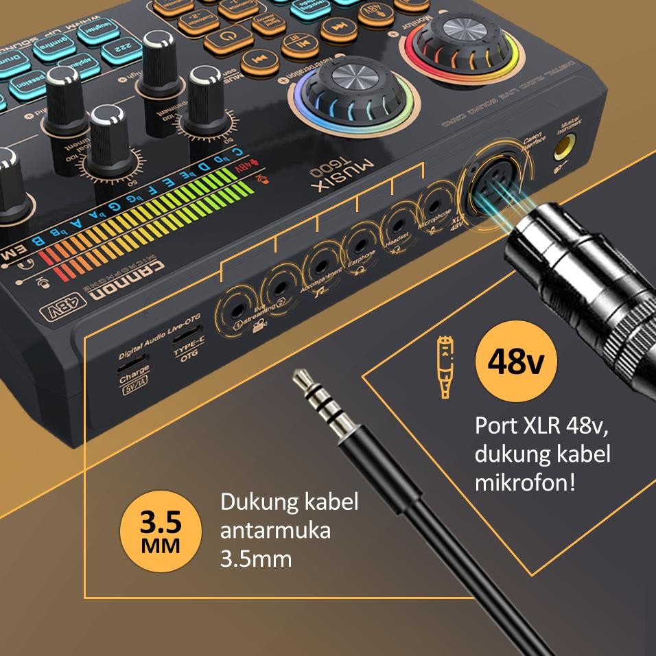 IDEELAB-T600 Sound Card 48V Gray Mikrofon Suara Antarmuka Audio Mixer Kartu Suara Mixer Amplifier Cocok untuk Ponsel dan Komputer Rekaman Langsung Karaoke Podcast