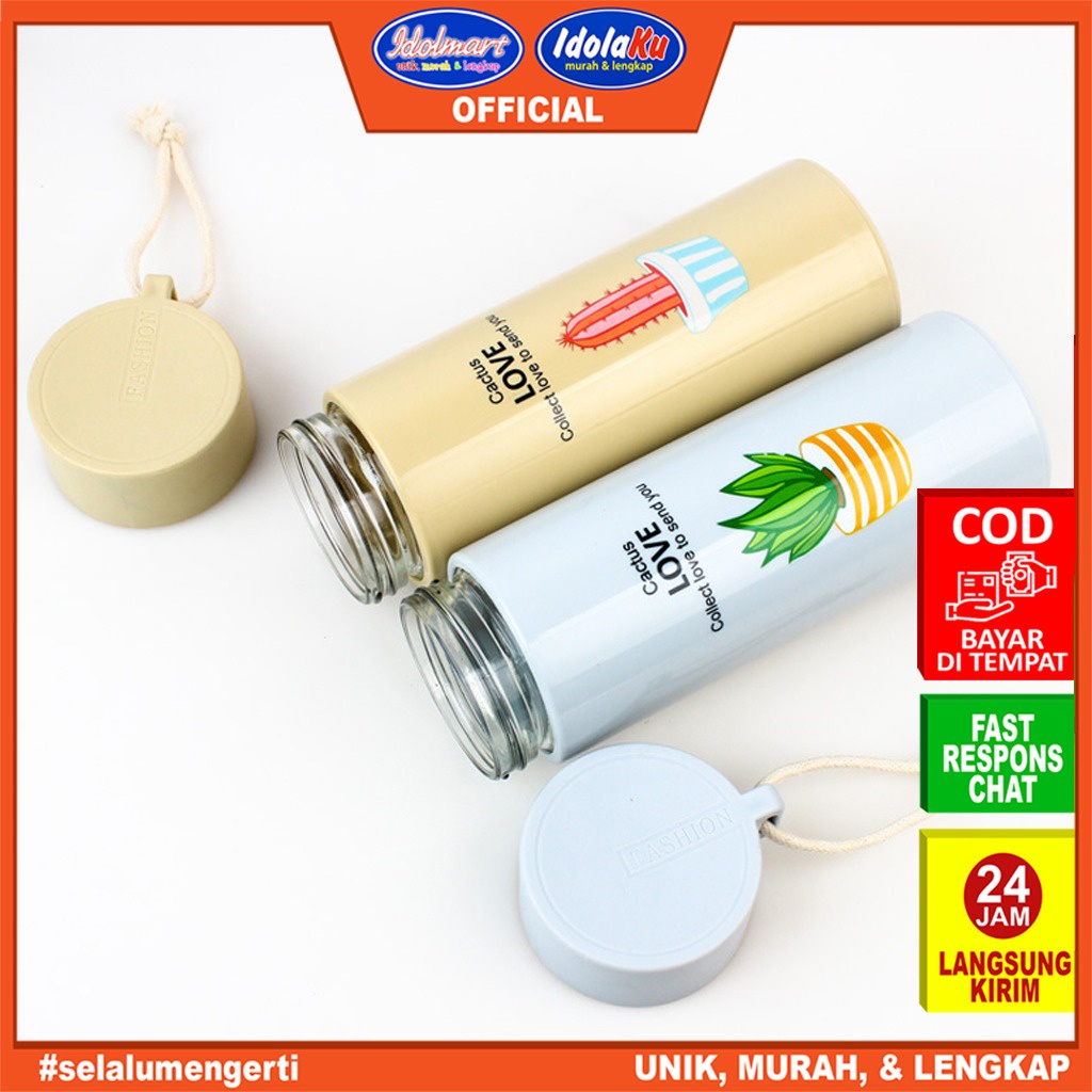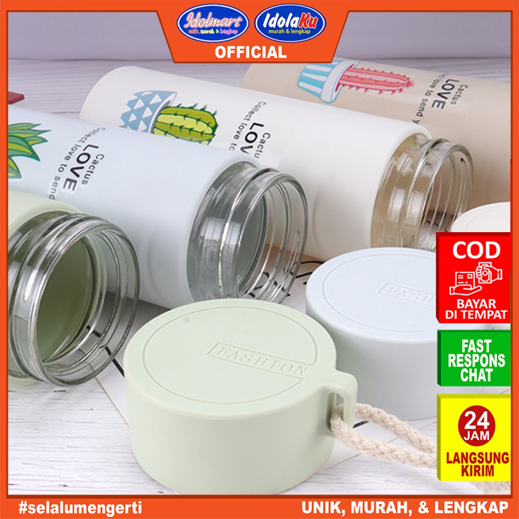 IDOLMART Botol Minum Kaca Kaktus 450ml