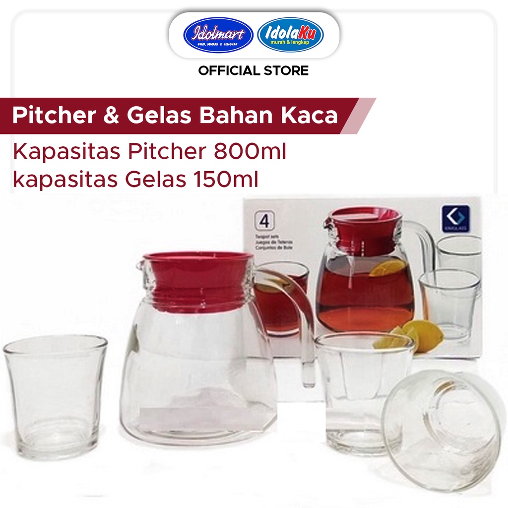 IDOLMART Pitcher Teko Set Bulat / Drink Set Kimglass isi 4 pcs / Teko Bulat dan gelas - Tangerang