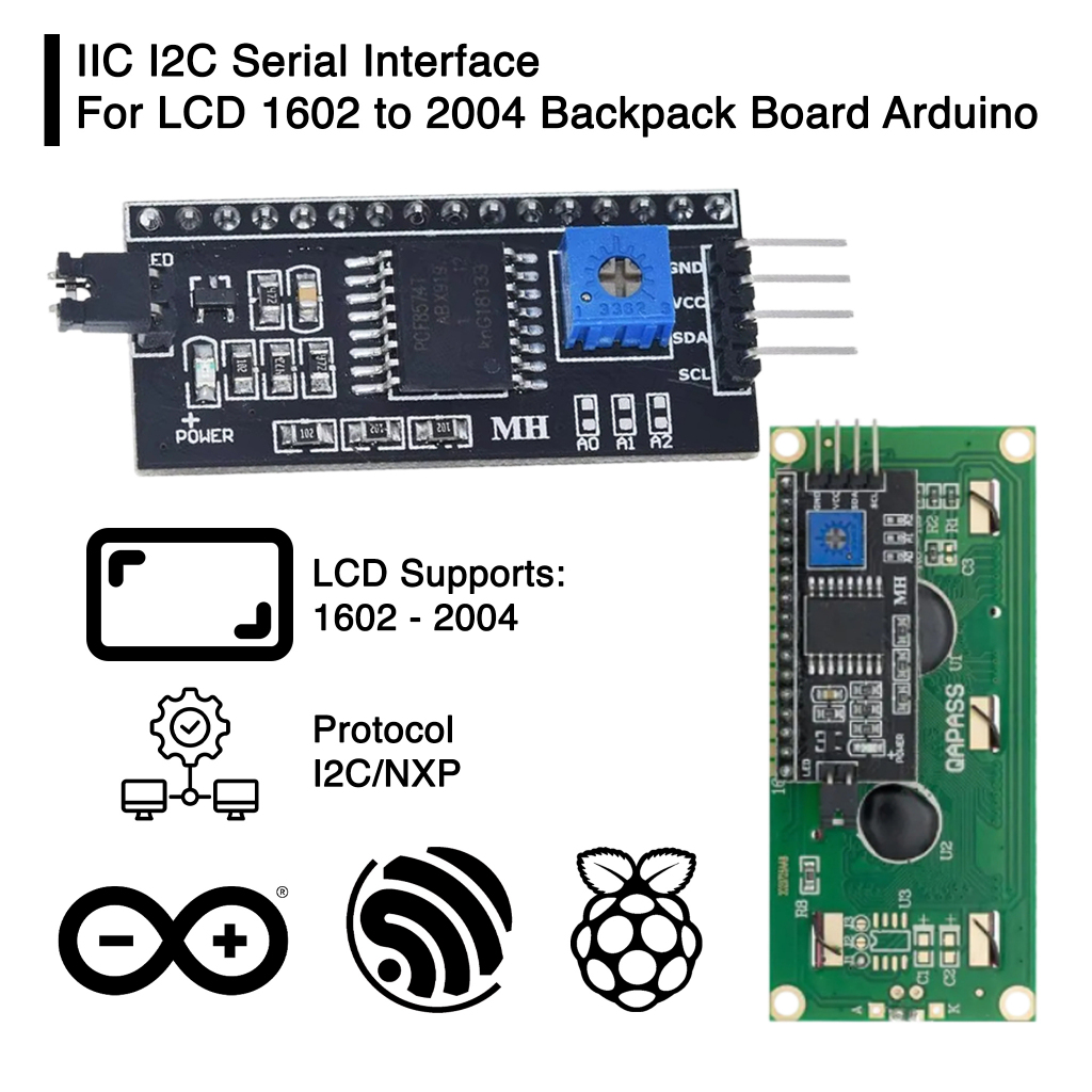 IIC I2C Serial Interface For LCD 1602 to 2004 Backpack Board Arduino