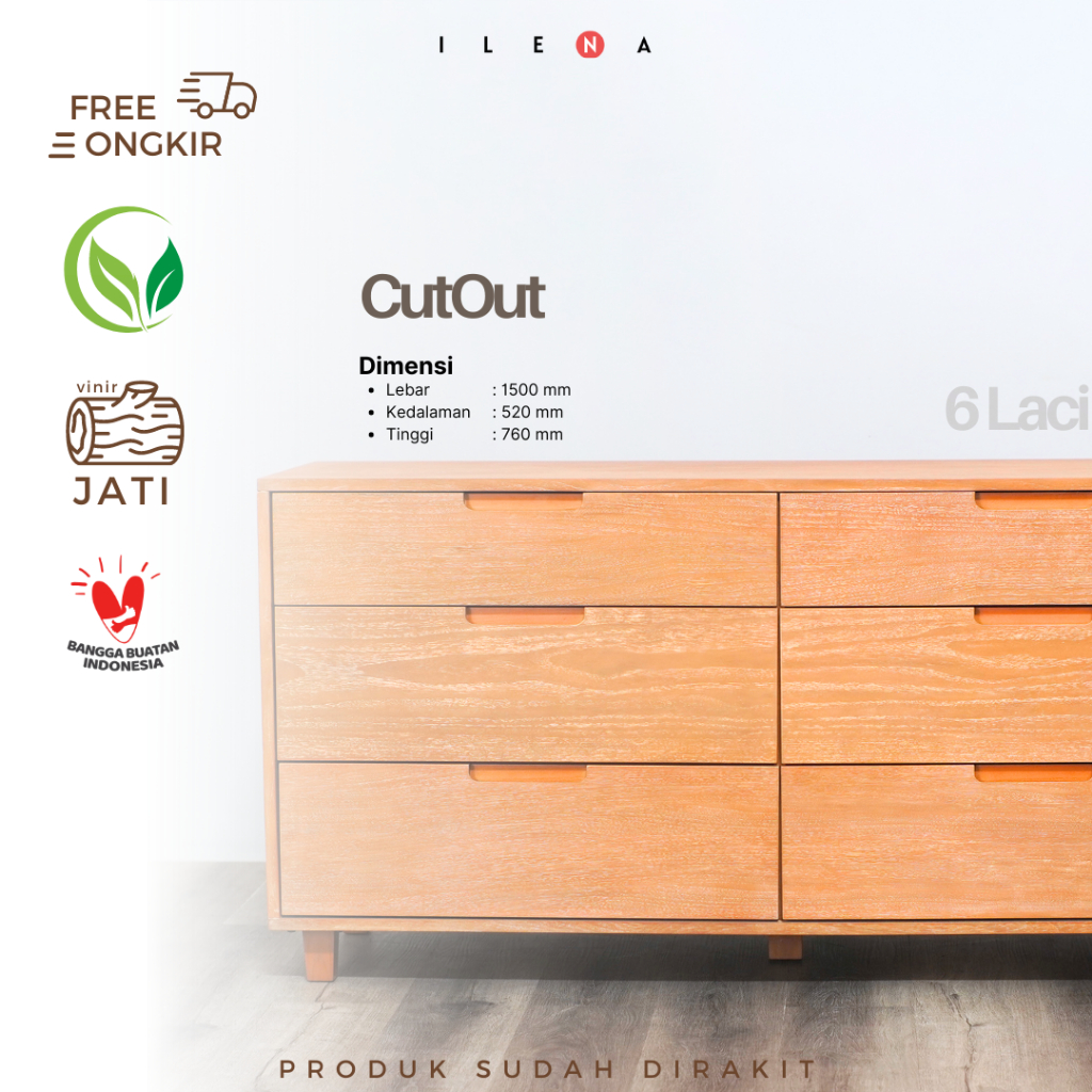 ILENA FURNITURE Cutout - Dresser 6 Drawer / Lemari Laci / Rak Laci Serbaguna