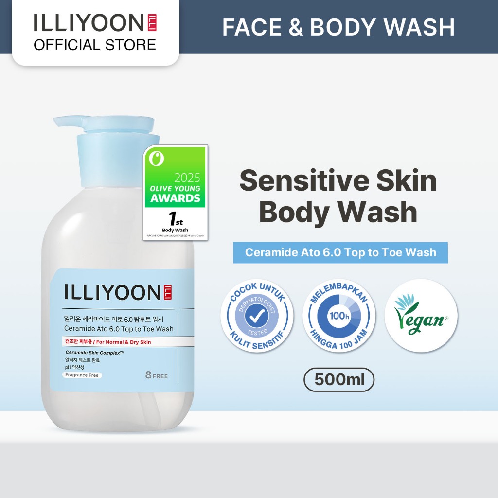ILLIYOON Ceramide 6.0 Top To Toe Wash 500ml - Sensitive Skin, Hair, Face, & Body Wash - Sabun untuk Wajah, Tubuh, dan Rambut - Aman di Kulit Sensitif