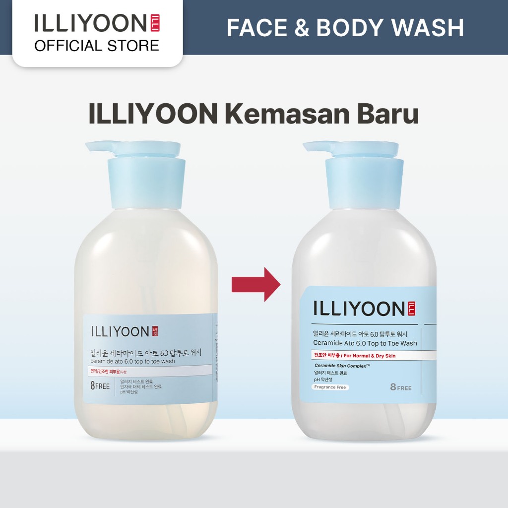 ILLIYOON Ceramide 6.0 Top To Toe Wash 500ml - Sensitive Skin, Hair, Face, & Body Wash - Sabun untuk Wajah, Tubuh, dan Rambut - Aman di Kulit Sensitif