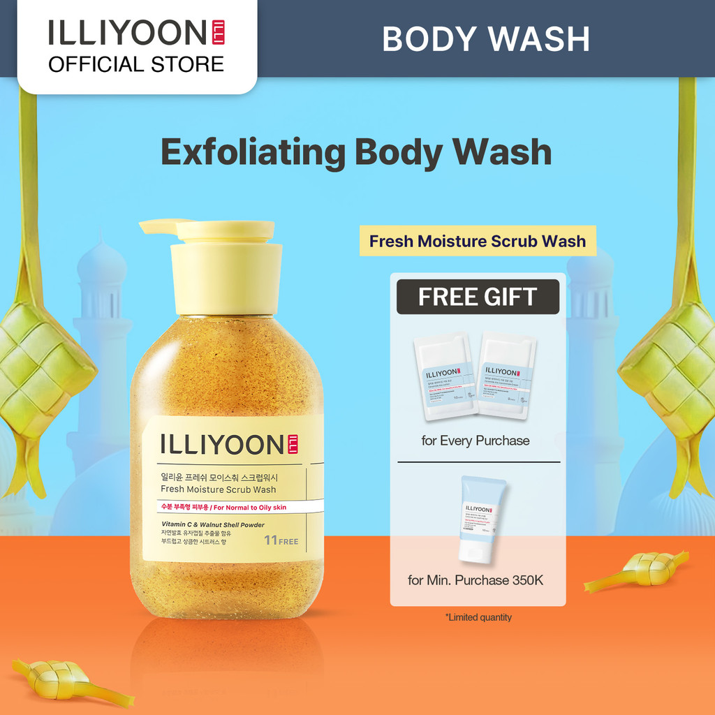 ILLIYOON Fresh Moisture Scrub Wash 400ml - Exfoliating Body Wash - Sabun Mandi Eksfoliasi yang Melembutkan dan Menyegarkan Kulit