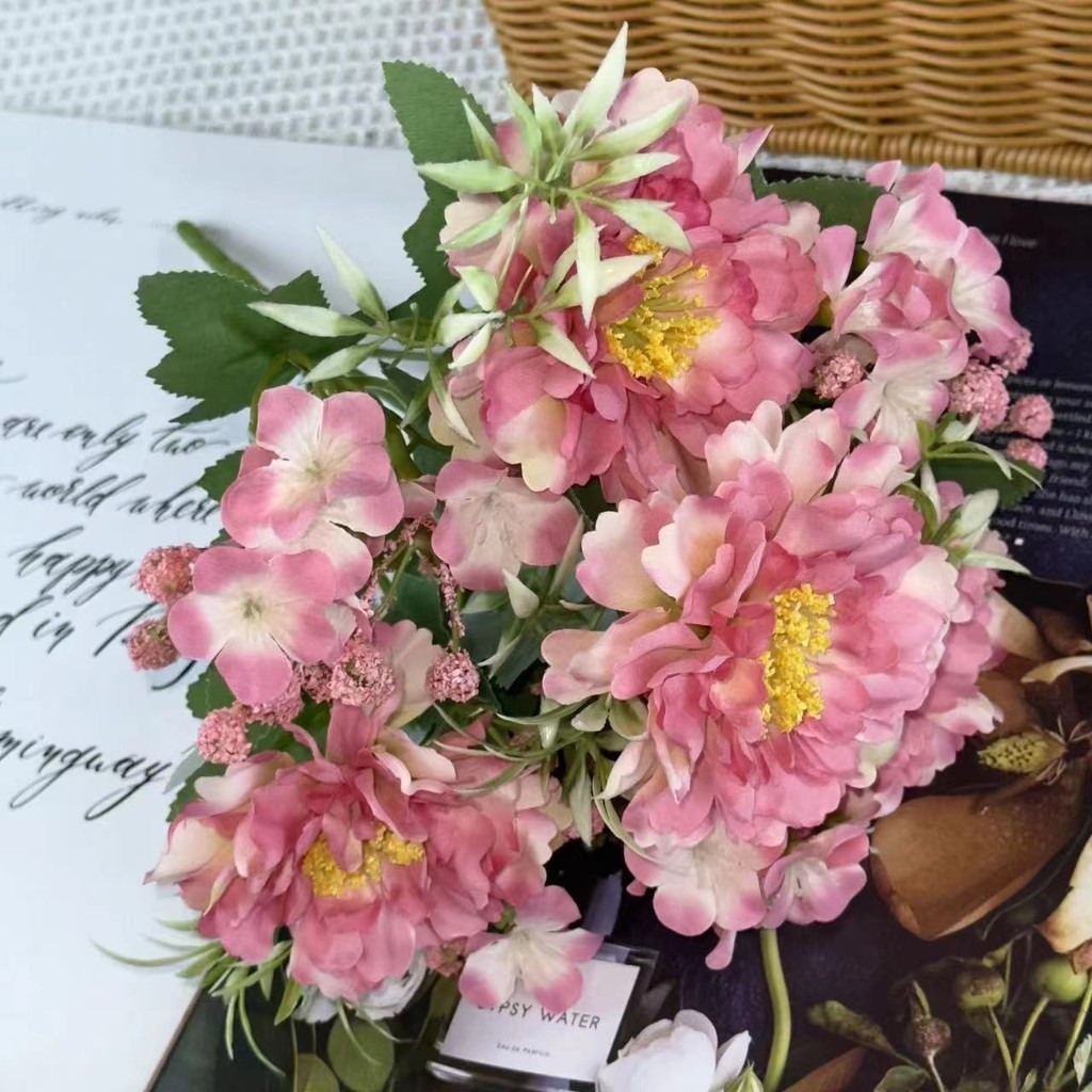 IN GOOD - Bouquet bunga BKT 1005 FUFU Bunga Peony + Krisan Artifisial Dekorasi Hiasan Seserahan Buket Palsu