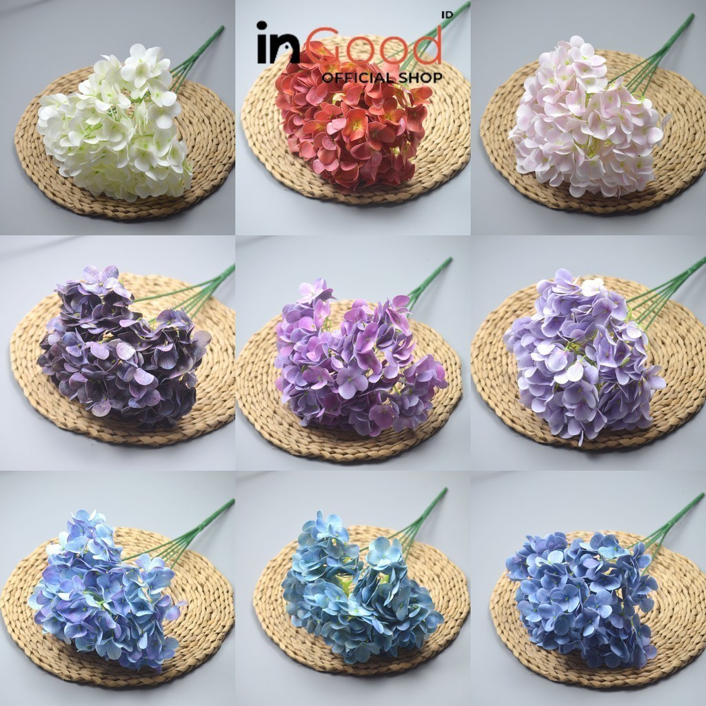 IN GOOD - Bunga 3D SEMIHYDRA Semi Latek Hydrangea HORTENSIA 44CM Bulat Jumbo 5 Cabang Premium