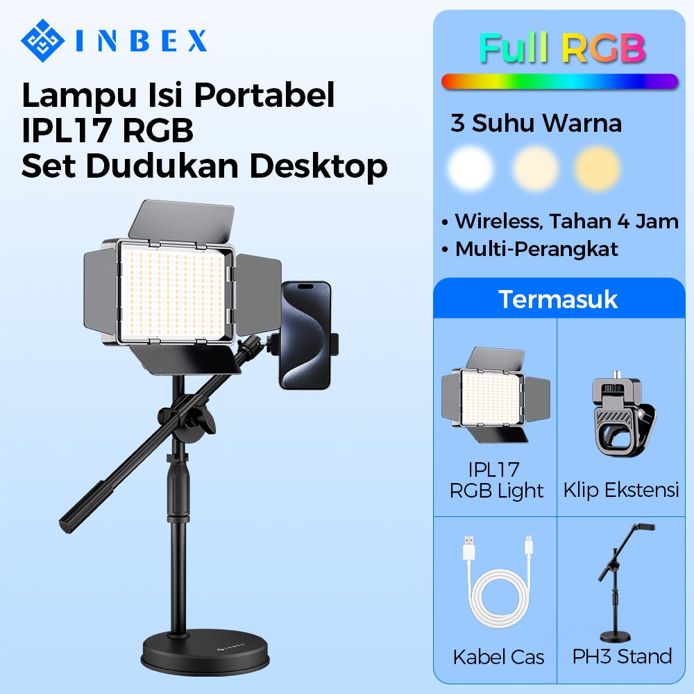 INBEX RGB IPL17 LED lampu kreator Outdoor lighting konten Portable Video untuk ponsel kamera Live Streaming ringlight